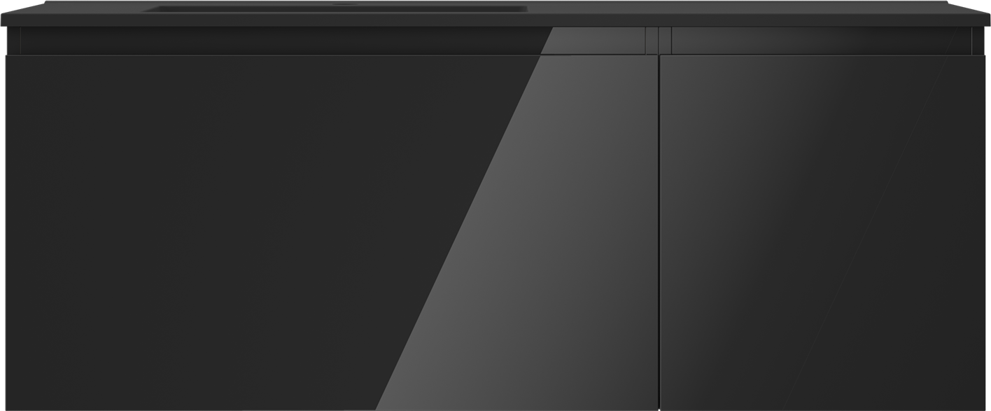 Mexen Orio 120 cm-es fürdőszobaszekrény Otis baloldali mosdóval, 1S, 1D, fekete fényes/fekete matt