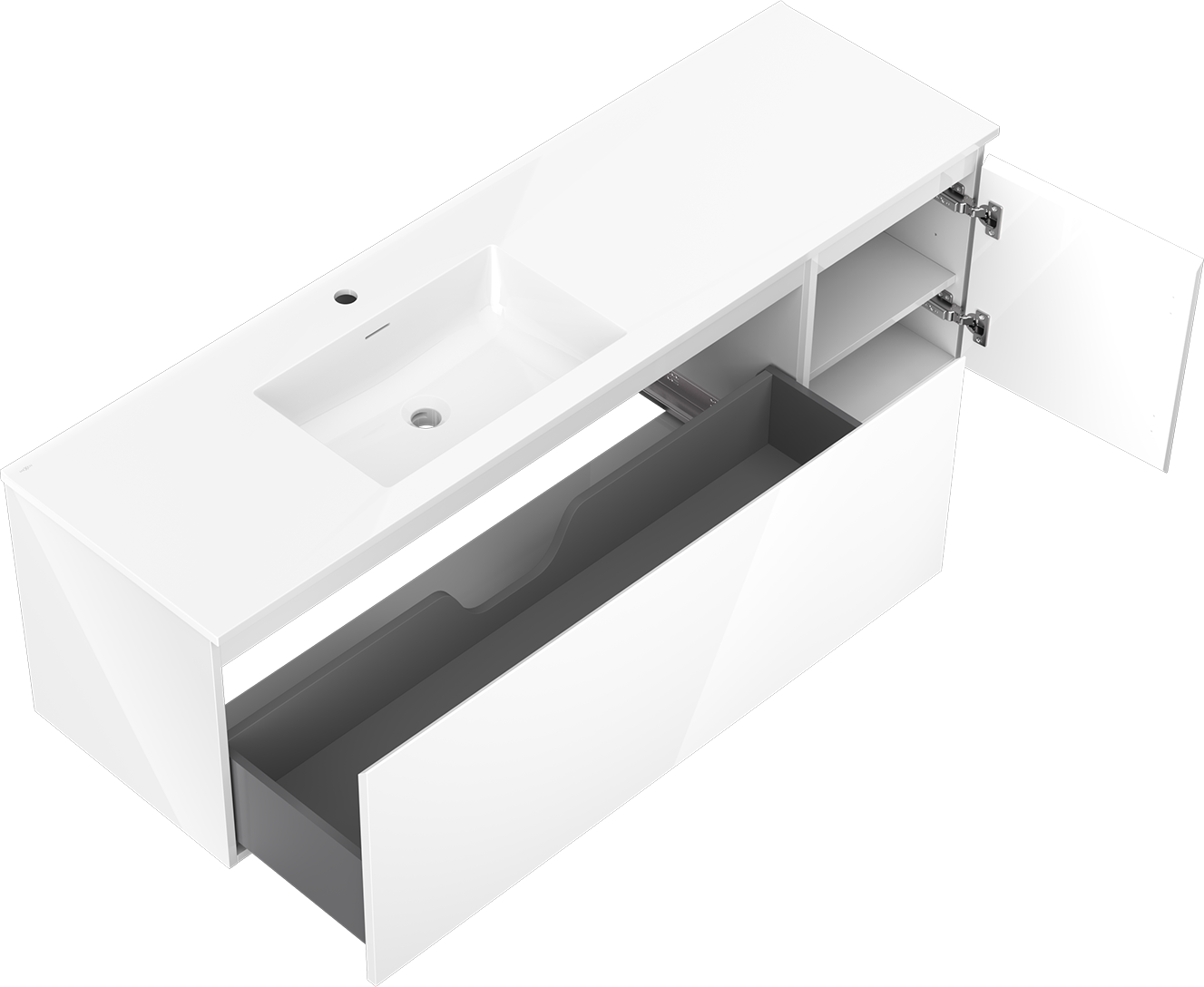 Mexen Orio 160 cm-es fürdőszobai szekrény Otis balkézmosóval, 1S, 1D, fényes fehér - 91A13-16047-3-BBFF00-W18L00
