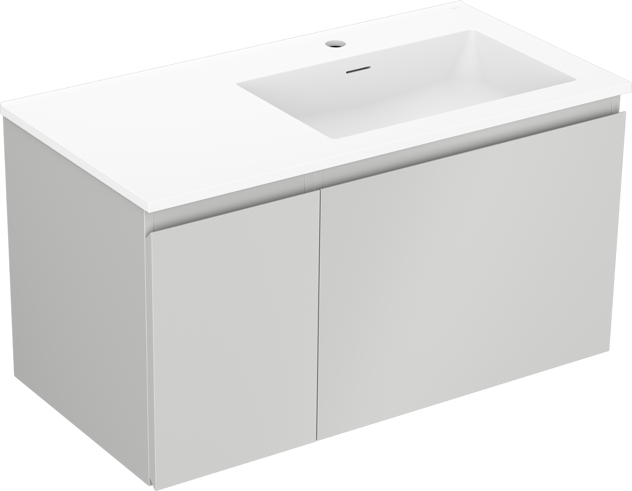 Mexen Orio 90 cm-es fürdőszobai szekrény Otis jobbos mosdóval, 1 fiók, 1 ajtó, szürke matt/fehér matt