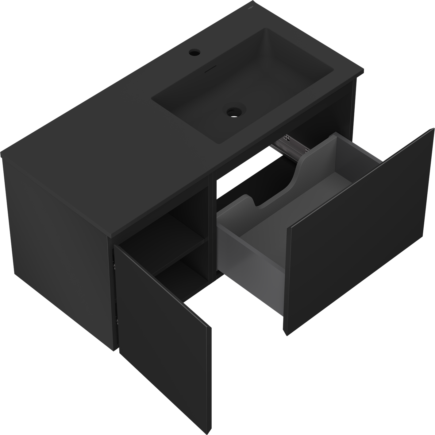 Mexen Orio fürdőszobai szekrény 100 cm Otis jobb oldali mosdóval, 1S, 1D, matt fekete - 91A13-10047-3-BBFF71-W18P71