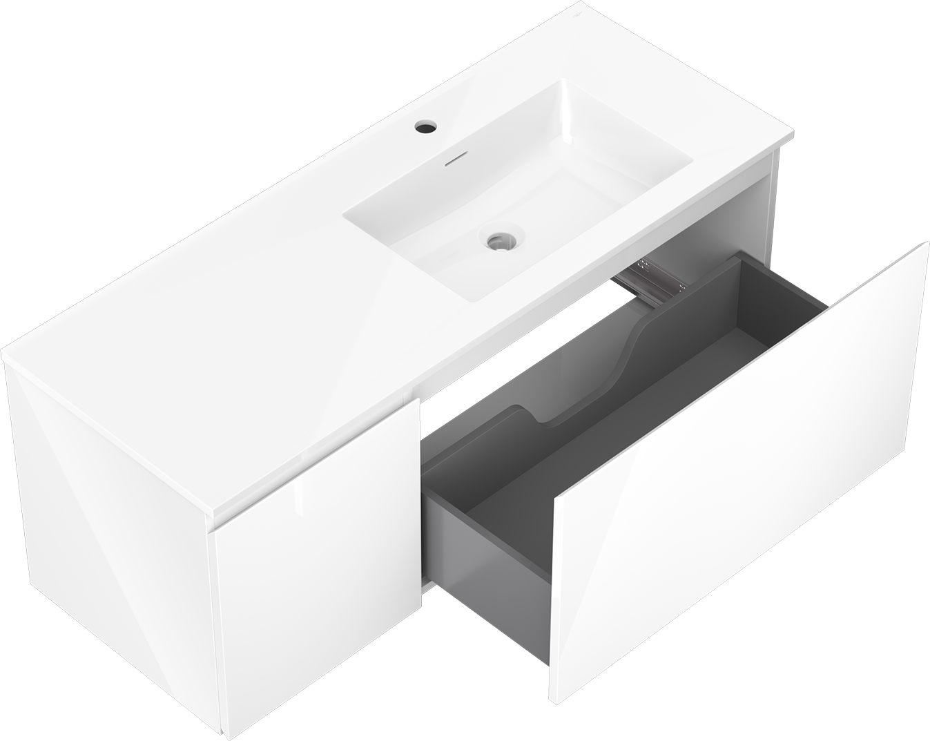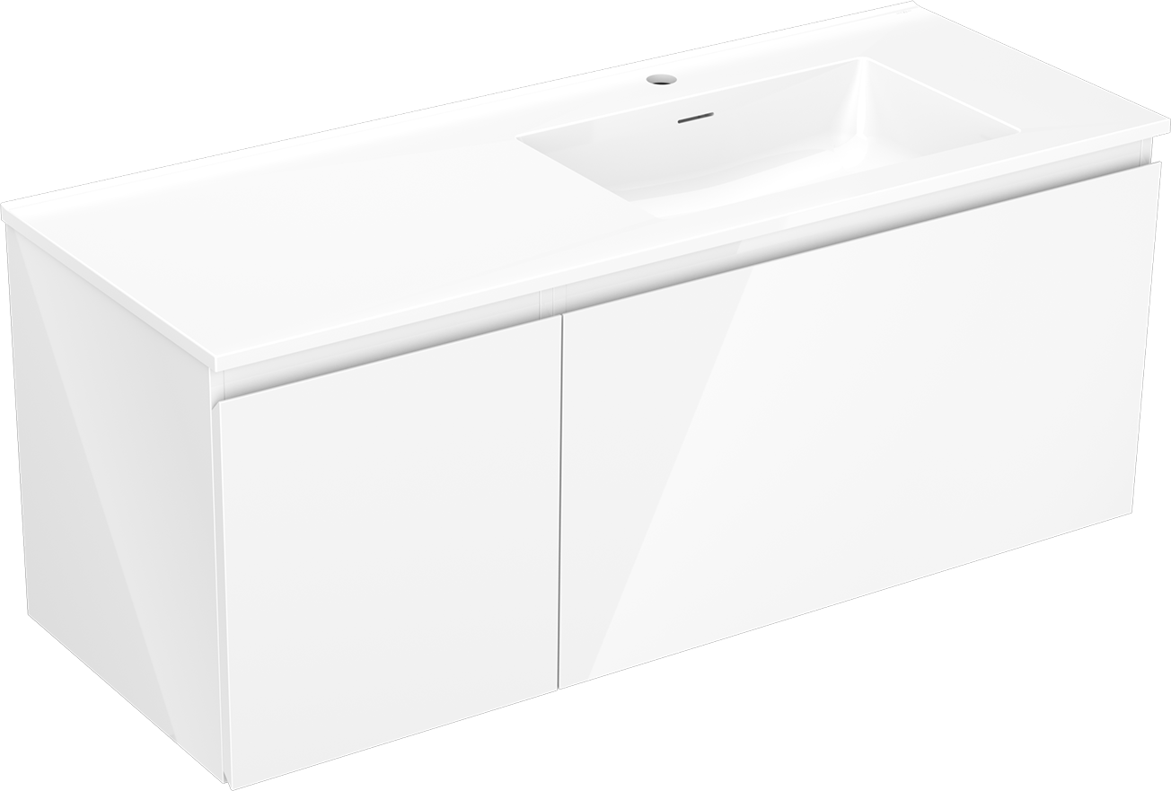 Mexen Orio 120 cm-es fürdőszobaszekrény Otis mosdóval jobbra, 1S, 1D, fehér fényes - 91A13-12047-3-BBFF00-W18P00