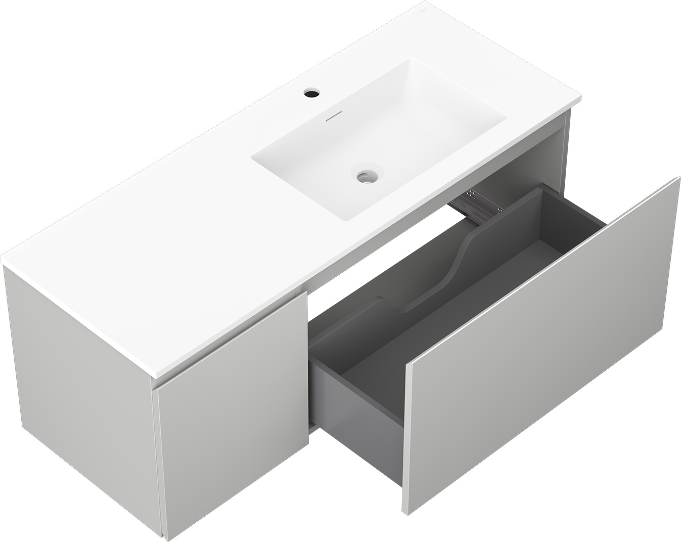 Mexen Orio 120 cm-es fürdőszobaszekrény mosdóval Otis jobb, 1S, 1D, szürke matt/fehér matt - 91A13-12047-3-BBFF62-W18P01