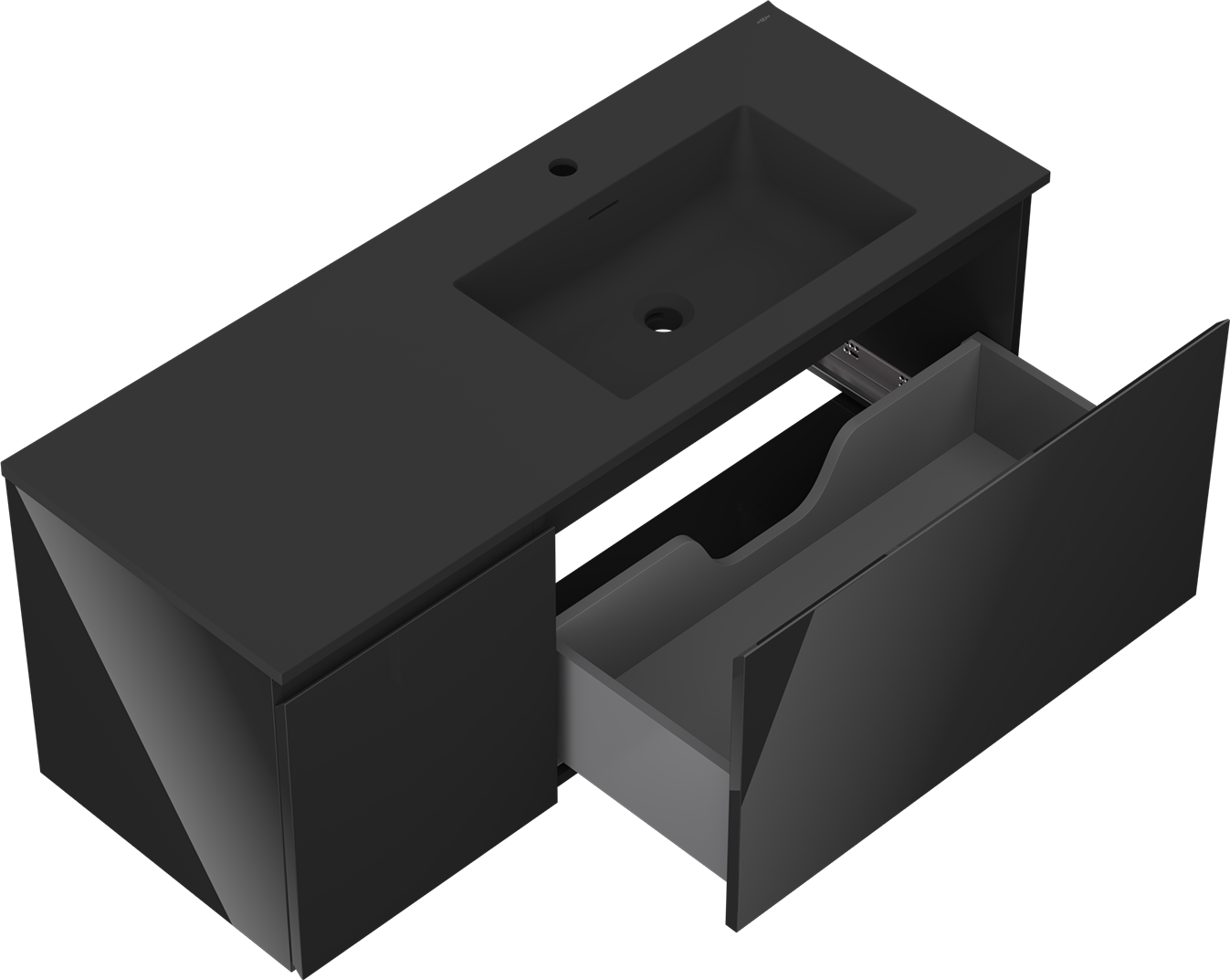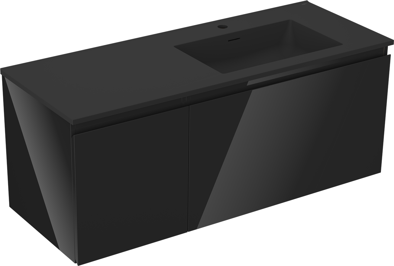Mexen Orio 120 cm-es fürdőszobaszekrény Otis mosdóval, jobb, 1S, 1D, fekete fényes/fekete matt - 91A13-12047-3-BBFF70-W18P71