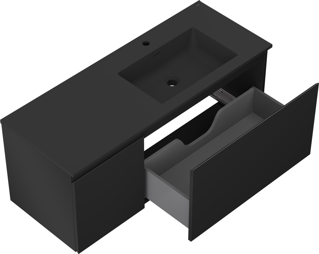 Mexen Orio fürdőszobai szekrény 120 cm mosdóval Otis jobbos, 1S, 1D, fekete matt - 91A13-12047-3-BBFF71-W18P71