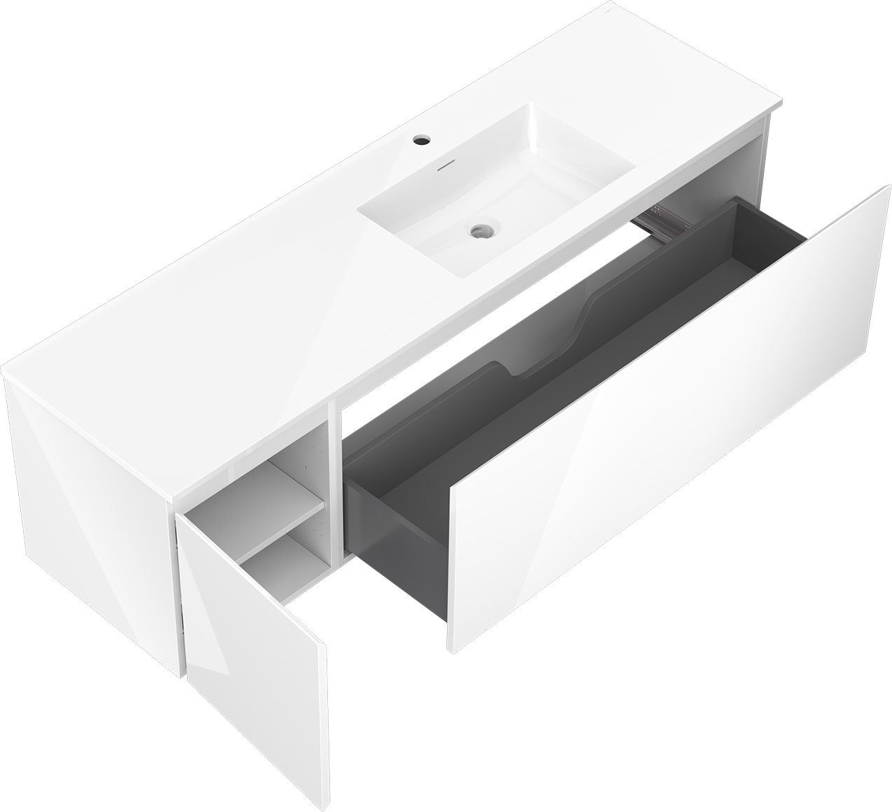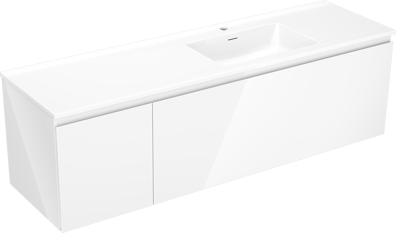 Mexen Orio fürdőszobai szekrény 160 cm Otis jobb oldali mosdóval, 1S, 1D, fényes fehér - 91A13-16047-3-BBFF00-W18P00