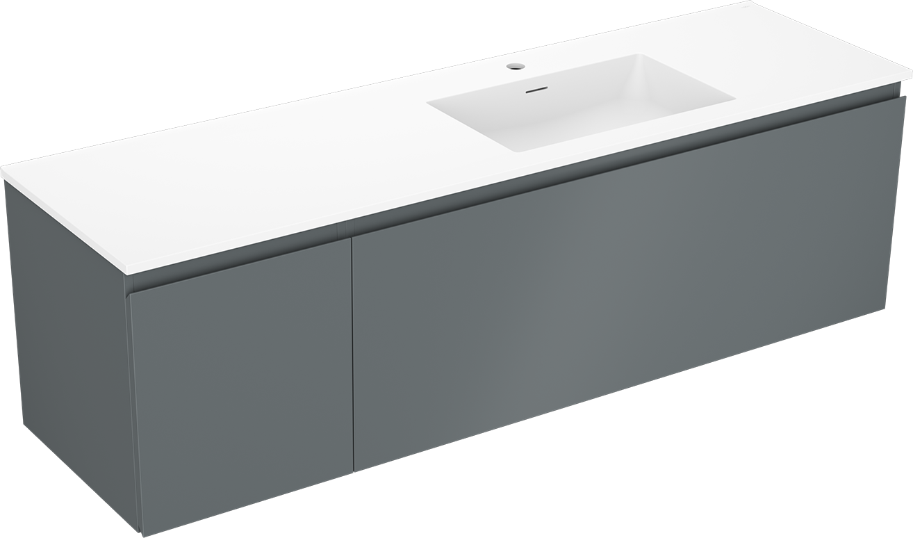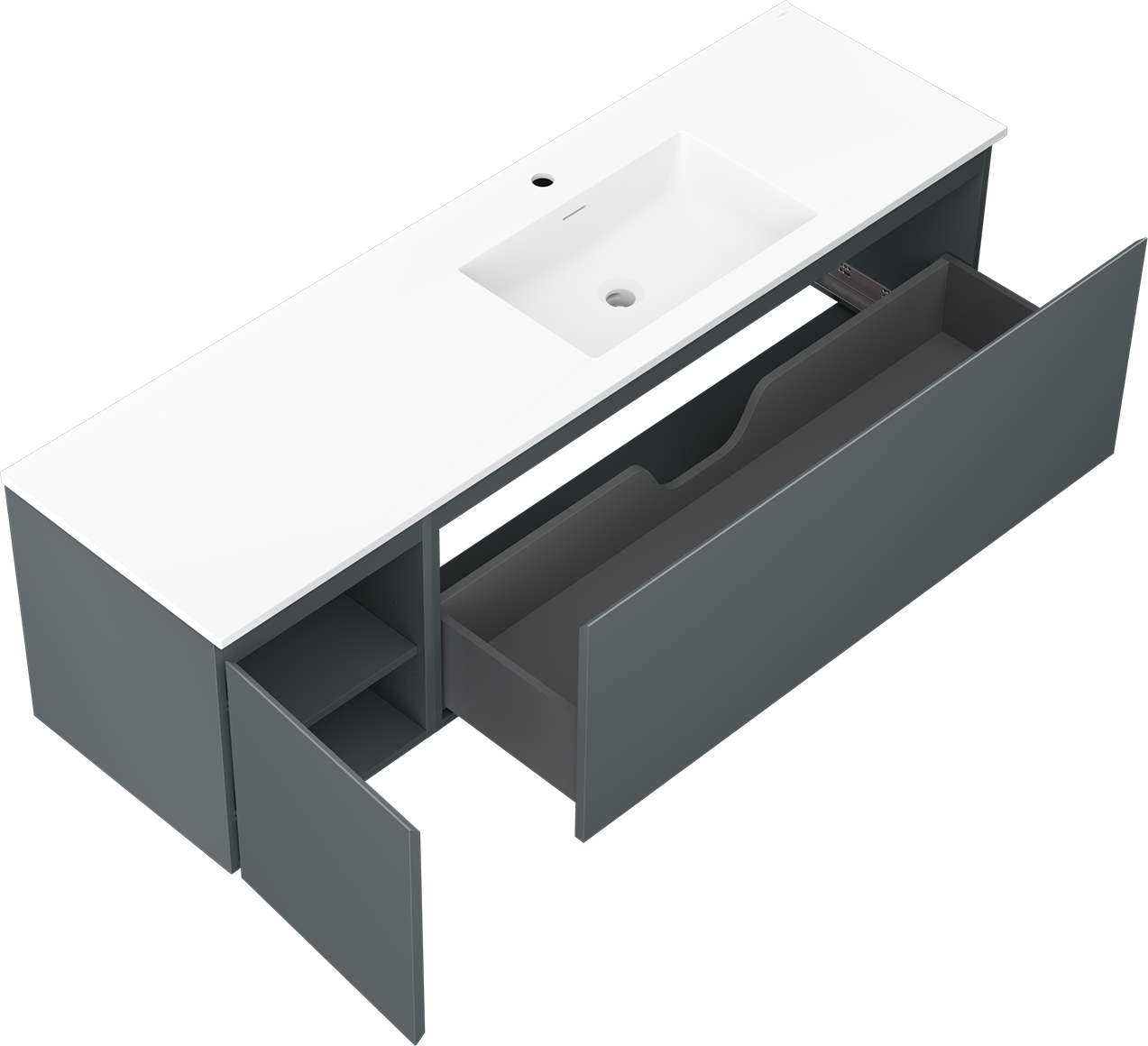 Mexen Orio 160 cm-es Otis fürdőszobai szekrény mosdóval jobb, 1S, 1D, grafit matt/fehér matt - 91A13-16047-3-BBFF66-W18P01