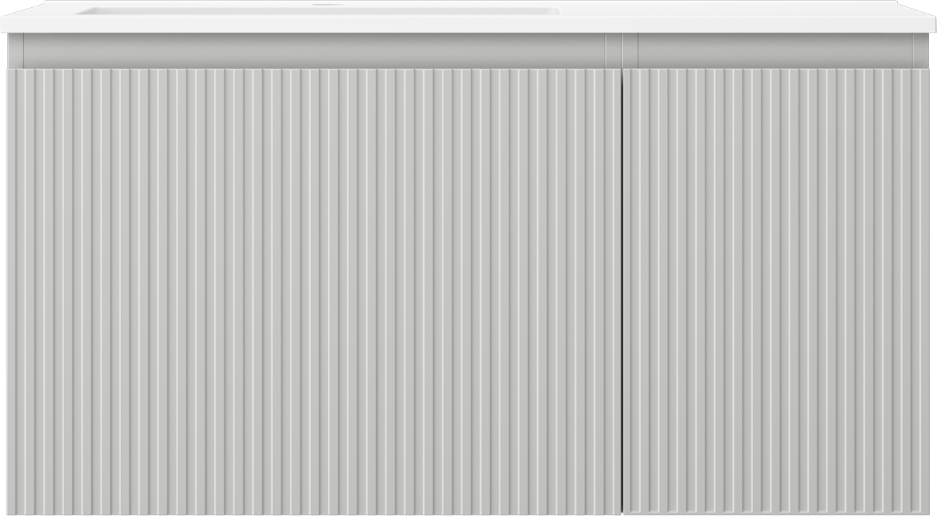 Mexen Rivel 90 cm-es fürdőszobaszekrény bal oldali Otis mosdóval, 1S, 1D, bordázott, szürke matt/fehér matt