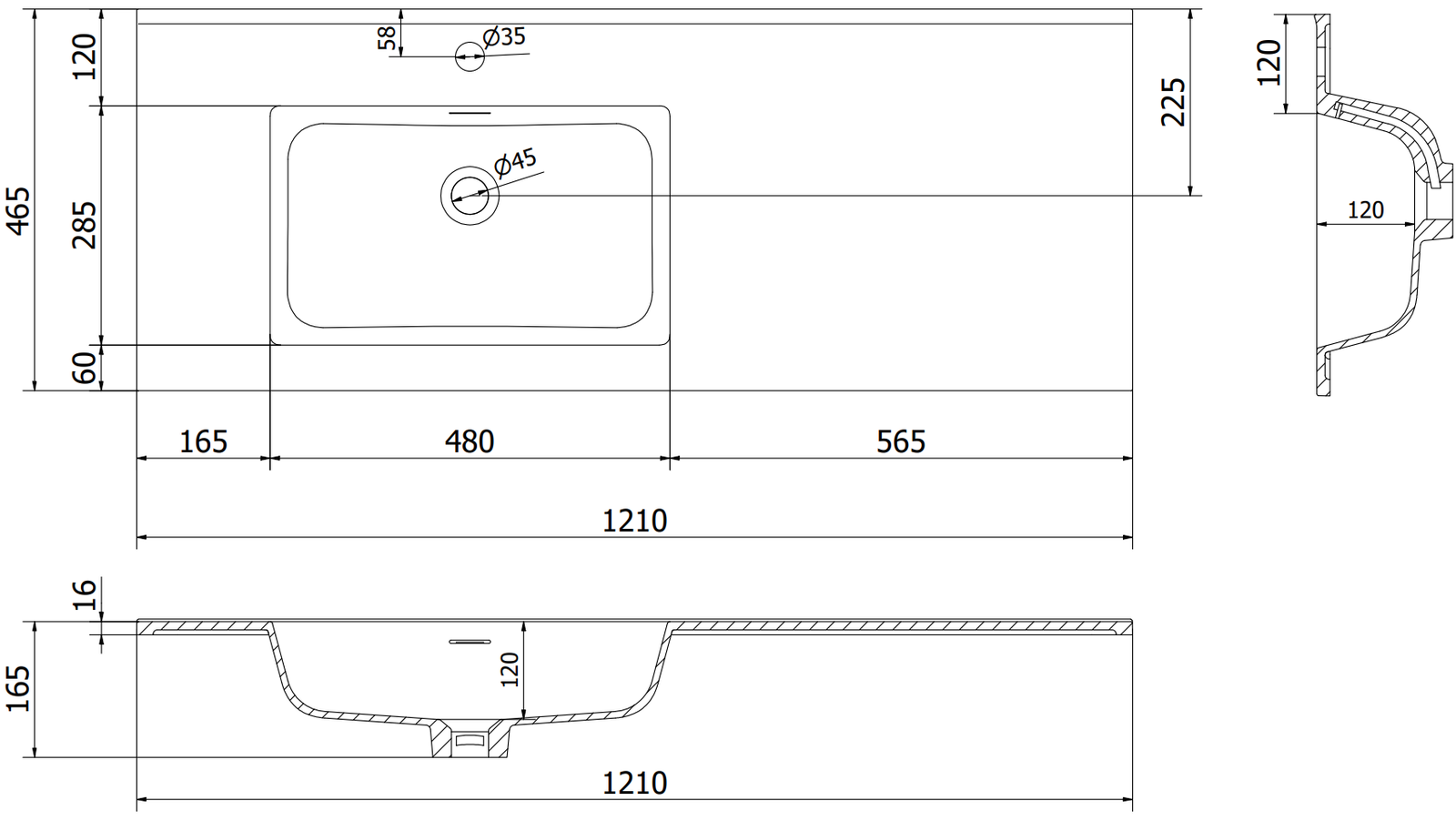 A túlfolyó nyílást "biztonsági nyílásnak" nevezik. Ezen keresztül távozik a felesleges víz, így a víz nem lép ki a termék peremén kívülre, amikor az alsó lefolyó zárva van. Ez egy nagyon biztonságos és praktikus megoldás.