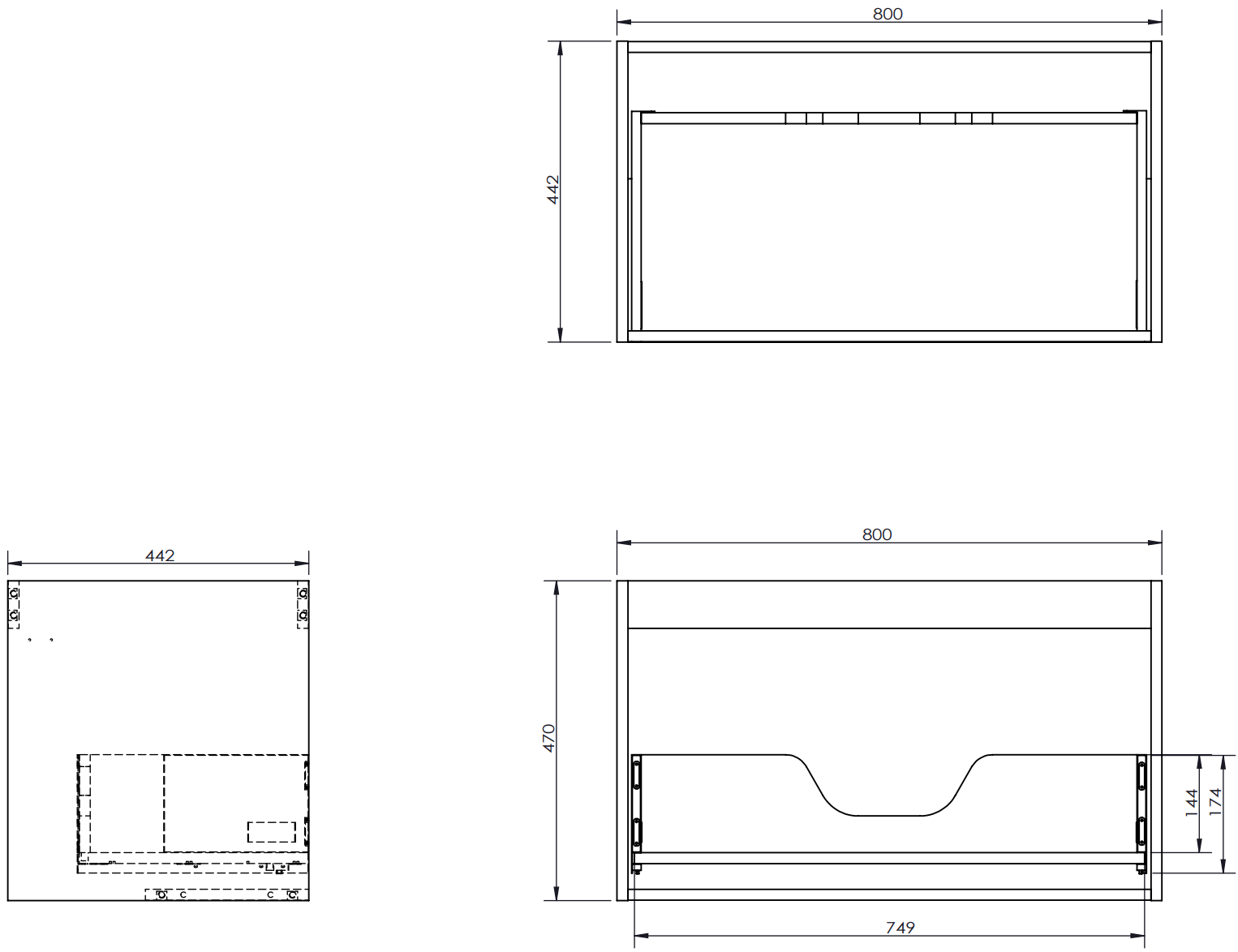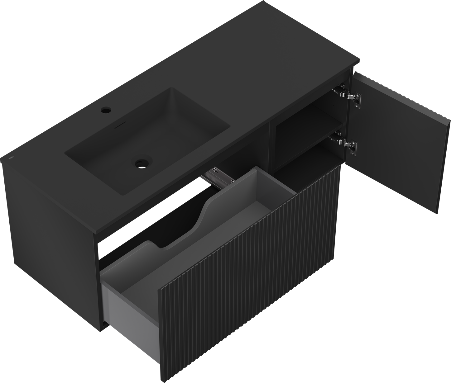 A fiókban lévő kivágás úgy van kialakítva, hogy befogadja a mosdó telepítéseknél szükséges szifont. Ennek köszönhetően a bútor teljesen funkcionálisan felszerelhető anélkül, hogy a fiók terének egy részét fel kellene áldozni a telepítés miatt.