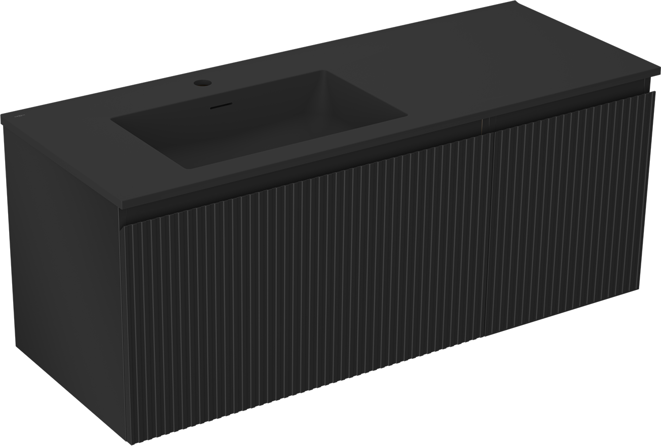 Mexen Rivel 120 cm-es fürdőszobai szekrény Otis bal oldali mosdóval, 1S, 1D, bordázott, fekete matt