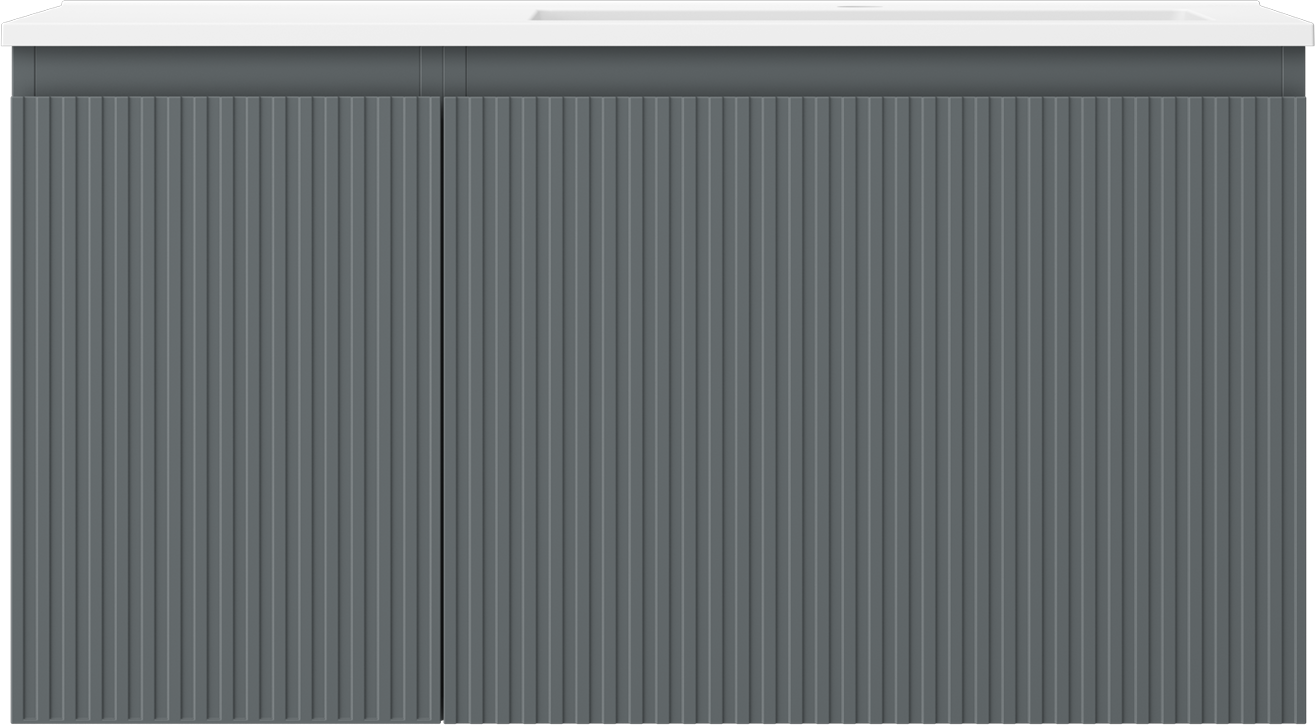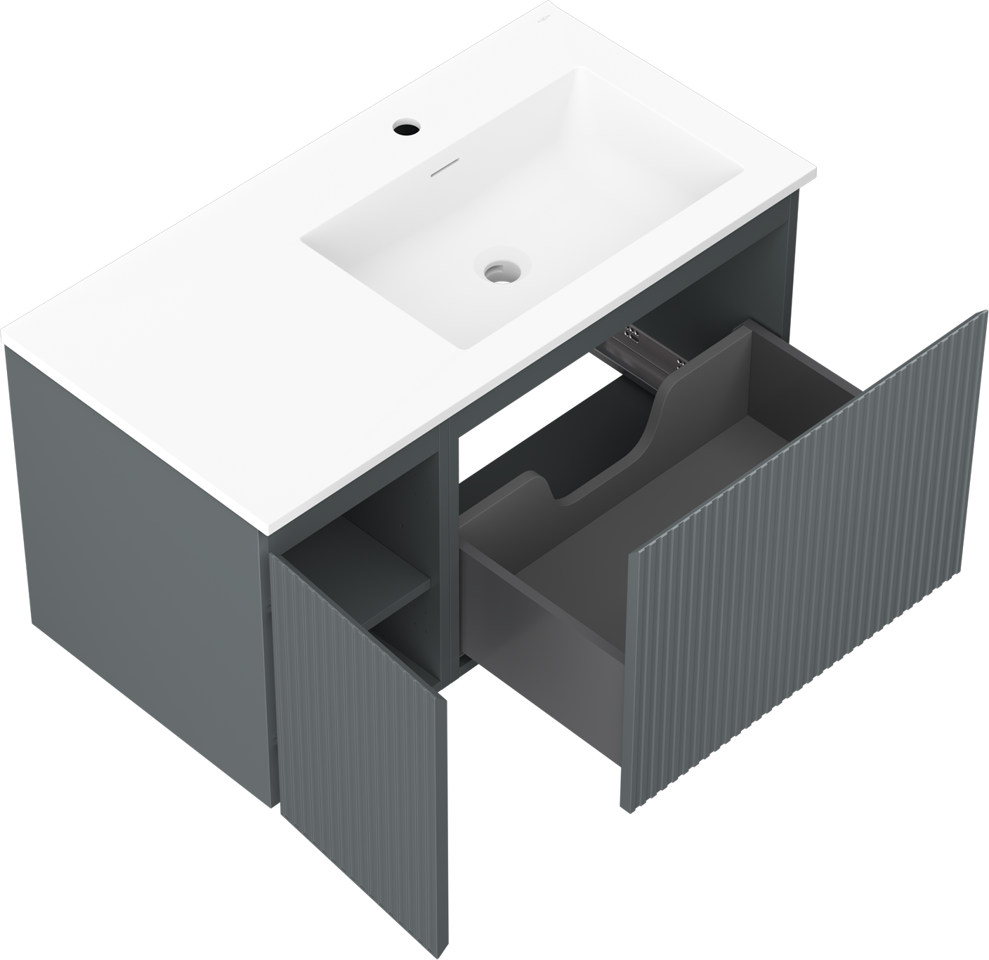 Mexen Rivel 90 cm-es fürdőszobai szekrény jobboldali Otis mosdóval, 1S, 1D, bordázott, grafit/fehér matt