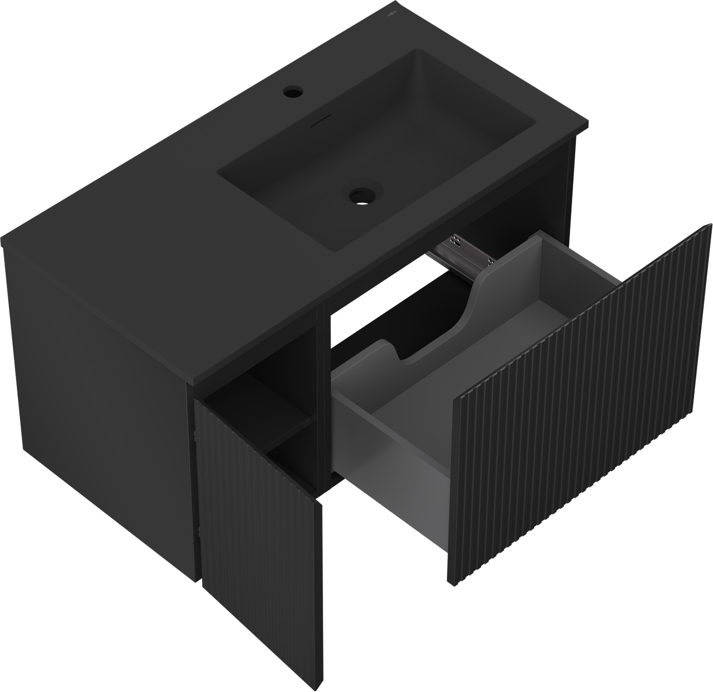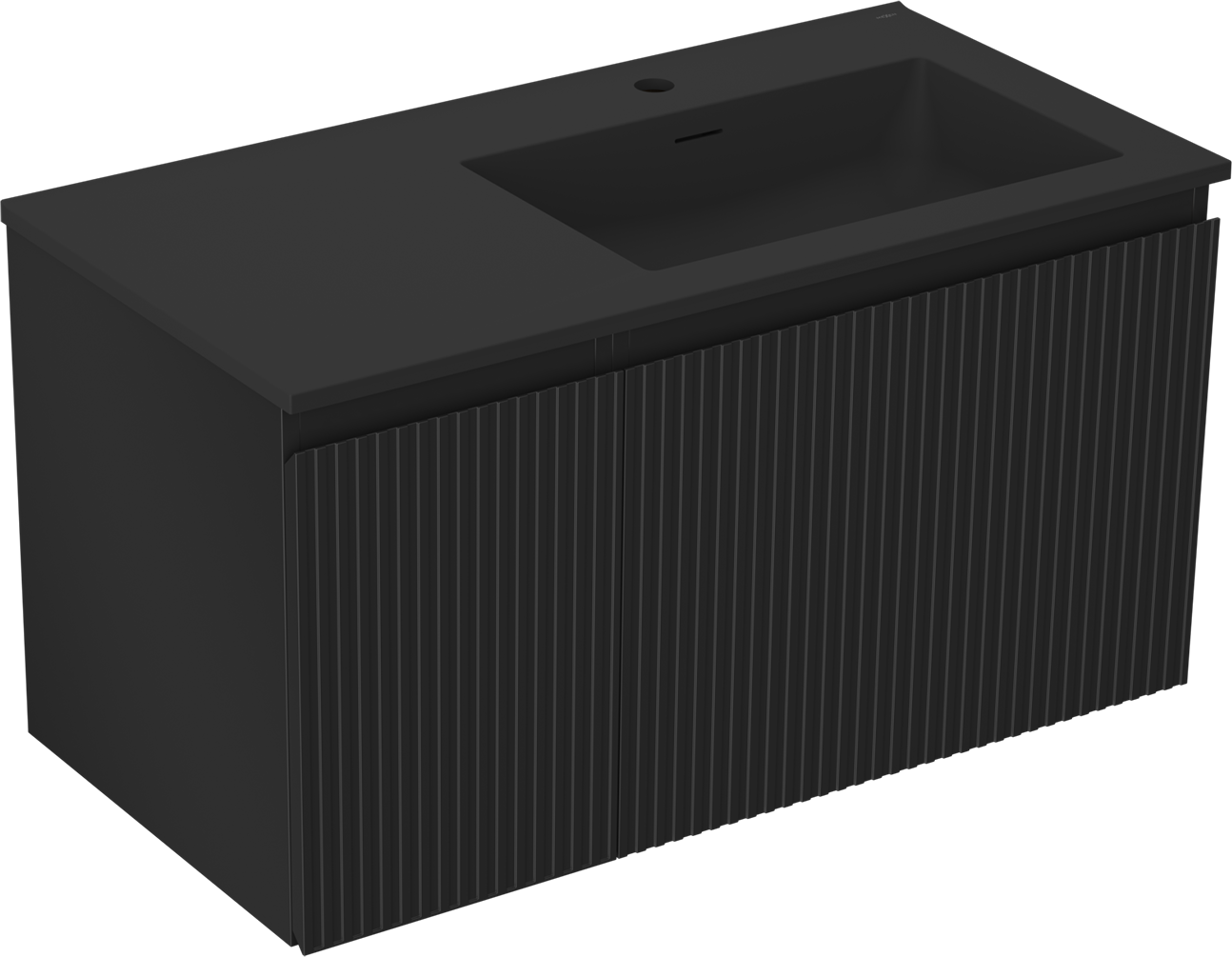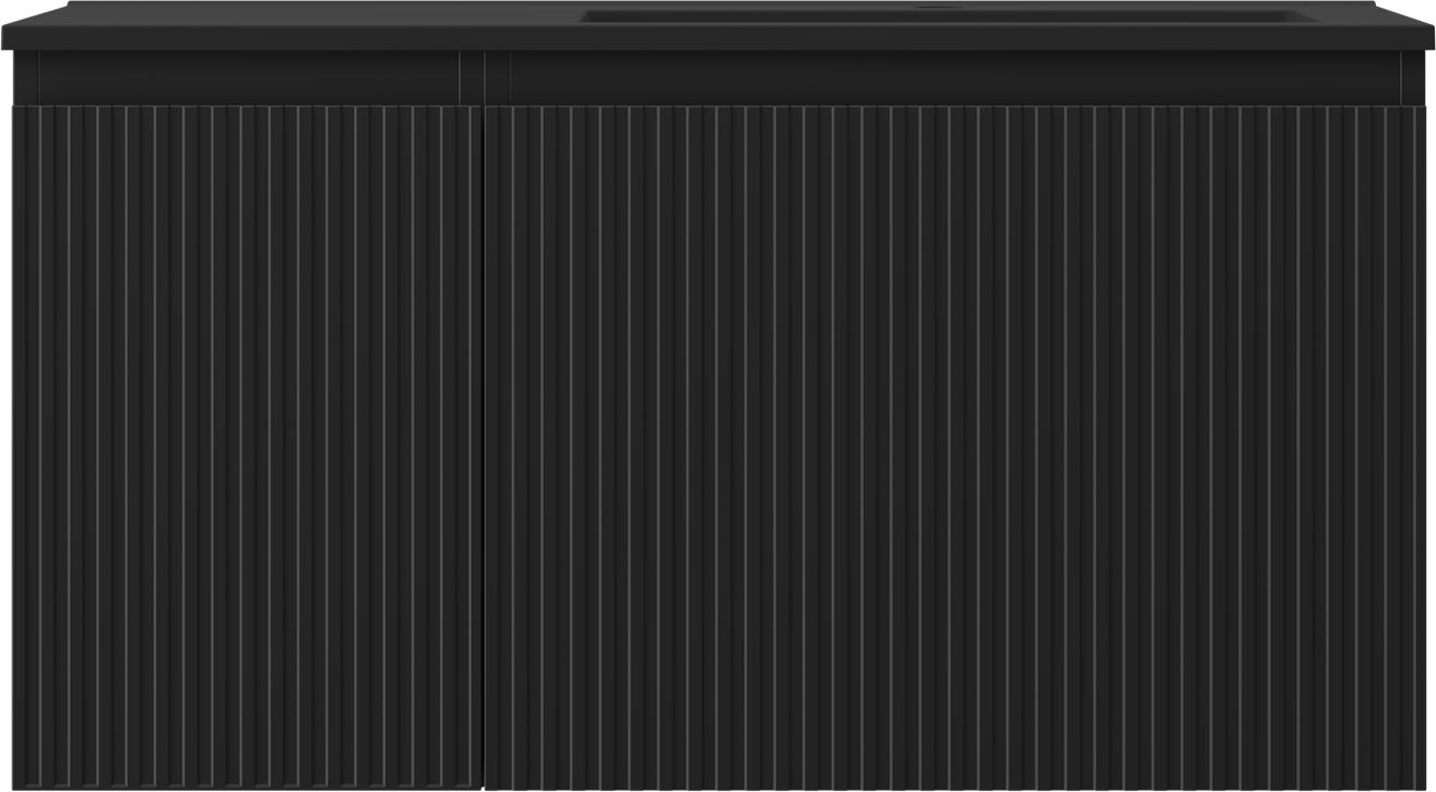 Mexen Rivel 90 cm-es fürdőszobaszekrény mosdóval Otis jobb oldali, 1S, 1D, bordázott, matt fekete