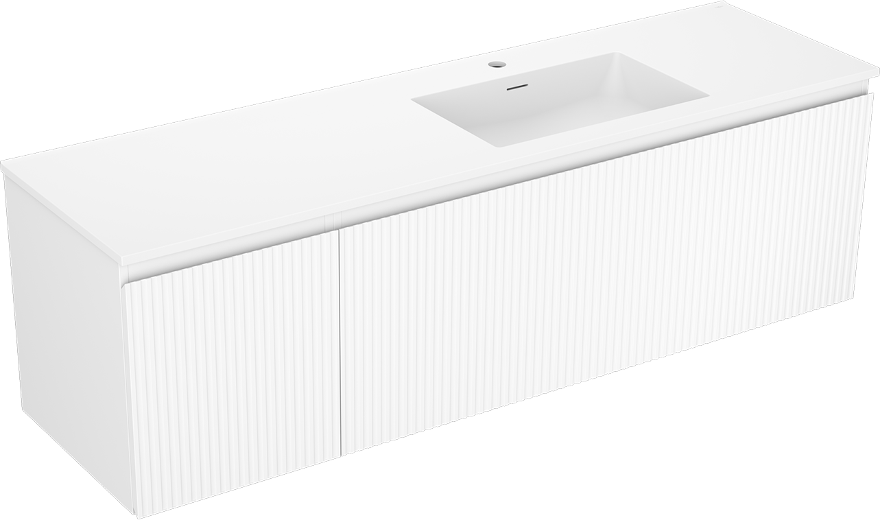 Mexen Rivel 160 cm-es fürdőszobaszekrény Otis mosdóval jobbos, 1 fiók, 1 ajtó, bordázott, matt fehér