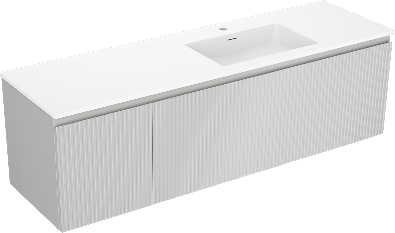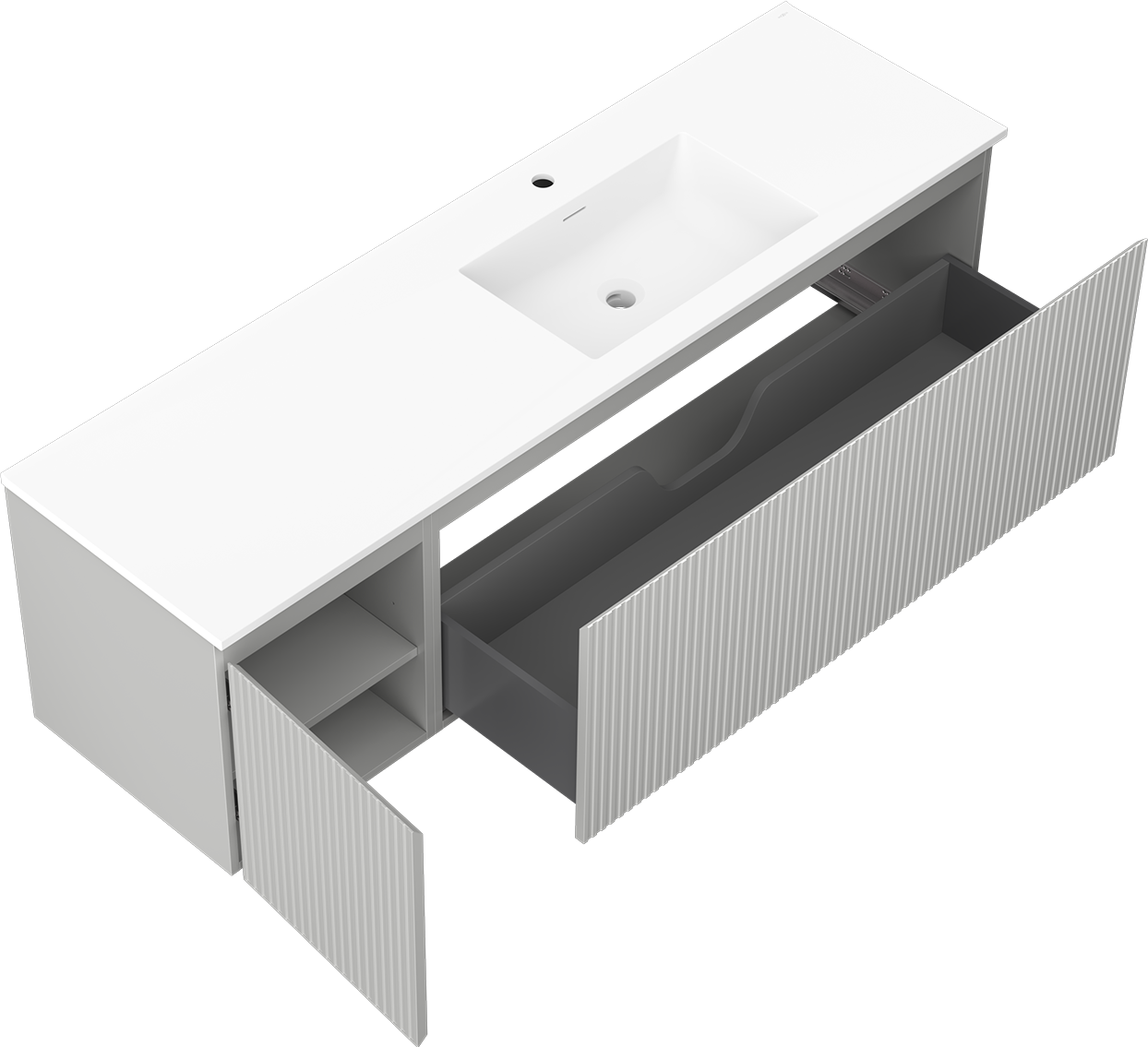 Mexen Rivel 160 cm-es fürdőszobaszekrény Otis jobb oldali mosdóval, 1S, 1D, bordázott, szürke matt/fehér matt
