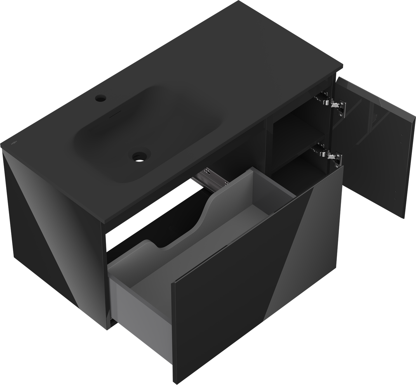 A fiókban lévő kivágás úgy van kialakítva, hogy befogadja a mosdó telepítéseknél szükséges szifont. Ennek köszönhetően a bútor teljesen funkcionálisan felszerelhető anélkül, hogy a fiók terének egy részét fel kellene áldozni a telepítés miatt.