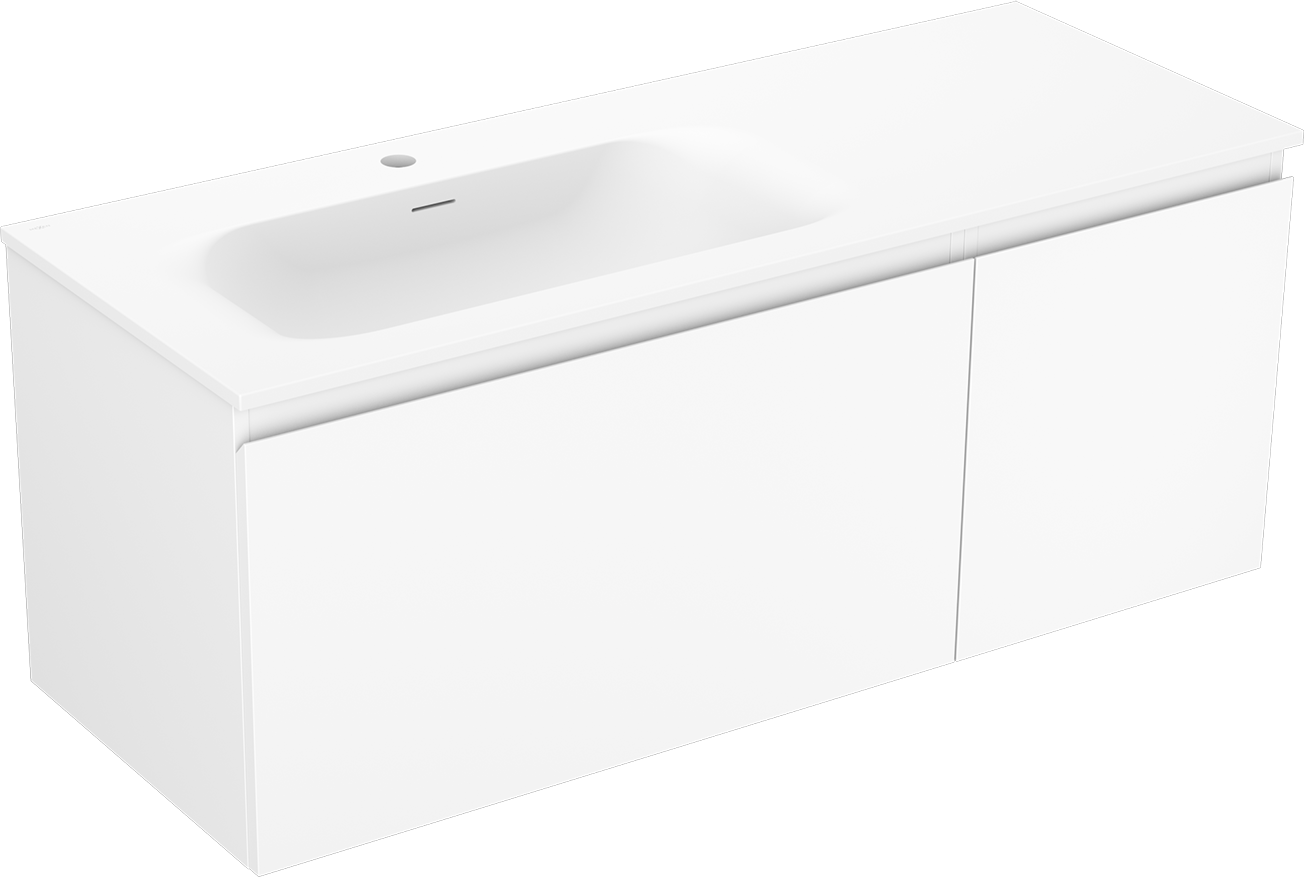 A fiókban lévő kivágás úgy van kialakítva, hogy befogadja a mosdó telepítéseknél szükséges szifont. Ennek köszönhetően a bútor teljesen funkcionálisan felszerelhető anélkül, hogy a fiók terének egy részét fel kellene áldozni a telepítés miatt.