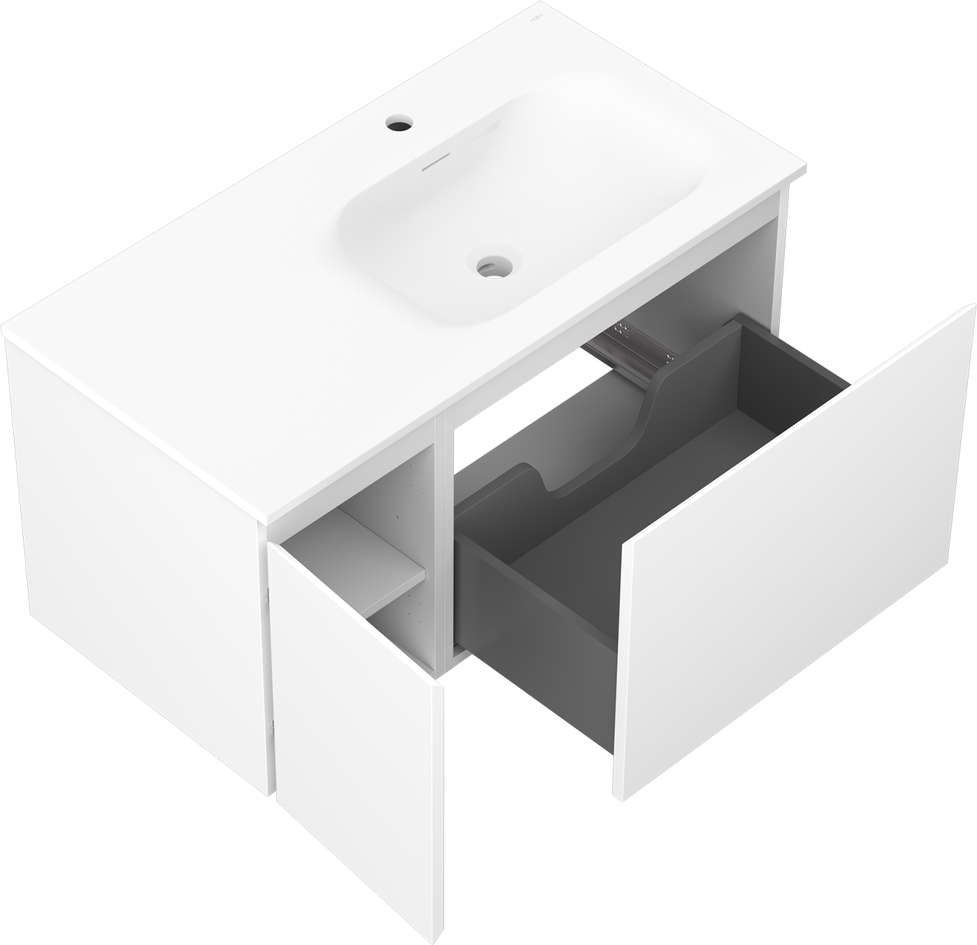 A fiókban lévő kivágás úgy van kialakítva, hogy befogadja a mosdó telepítéseknél szükséges szifont. Ennek köszönhetően a bútor teljesen funkcionálisan felszerelhető anélkül, hogy a fiók terének egy részét fel kellene áldozni a telepítés miatt.
