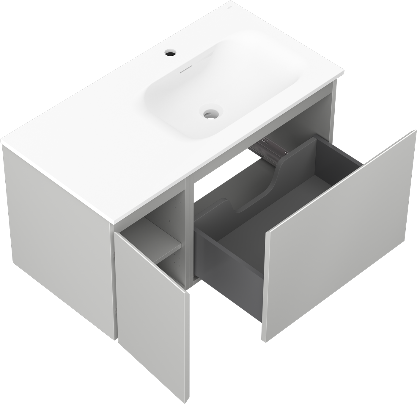 A fiókban lévő kivágás úgy van kialakítva, hogy befogadja a mosdó telepítéseknél szükséges szifont. Ennek köszönhetően a bútor teljesen funkcionálisan felszerelhető anélkül, hogy a fiók terének egy részét fel kellene áldozni a telepítés miatt.