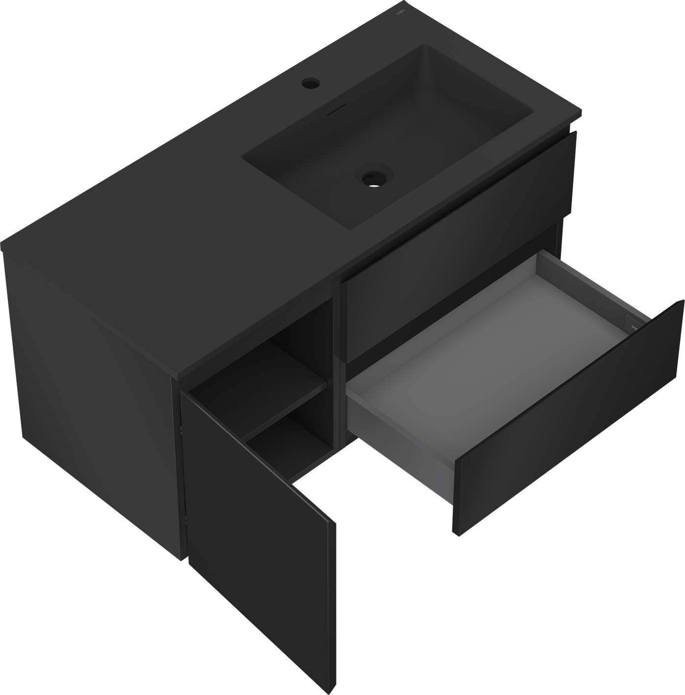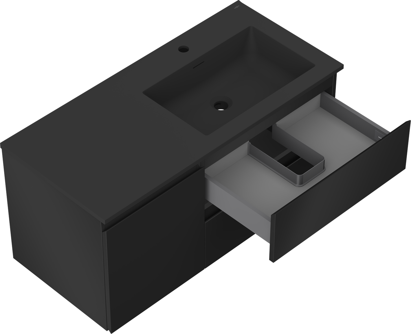 A fiókban lévő kivágás úgy van kialakítva, hogy befogadja a mosdó telepítéseknél szükséges szifont. Ennek köszönhetően a bútor teljesen funkcionálisan felszerelhető anélkül, hogy a fiók terének egy részét fel kellene áldozni a telepítés miatt.