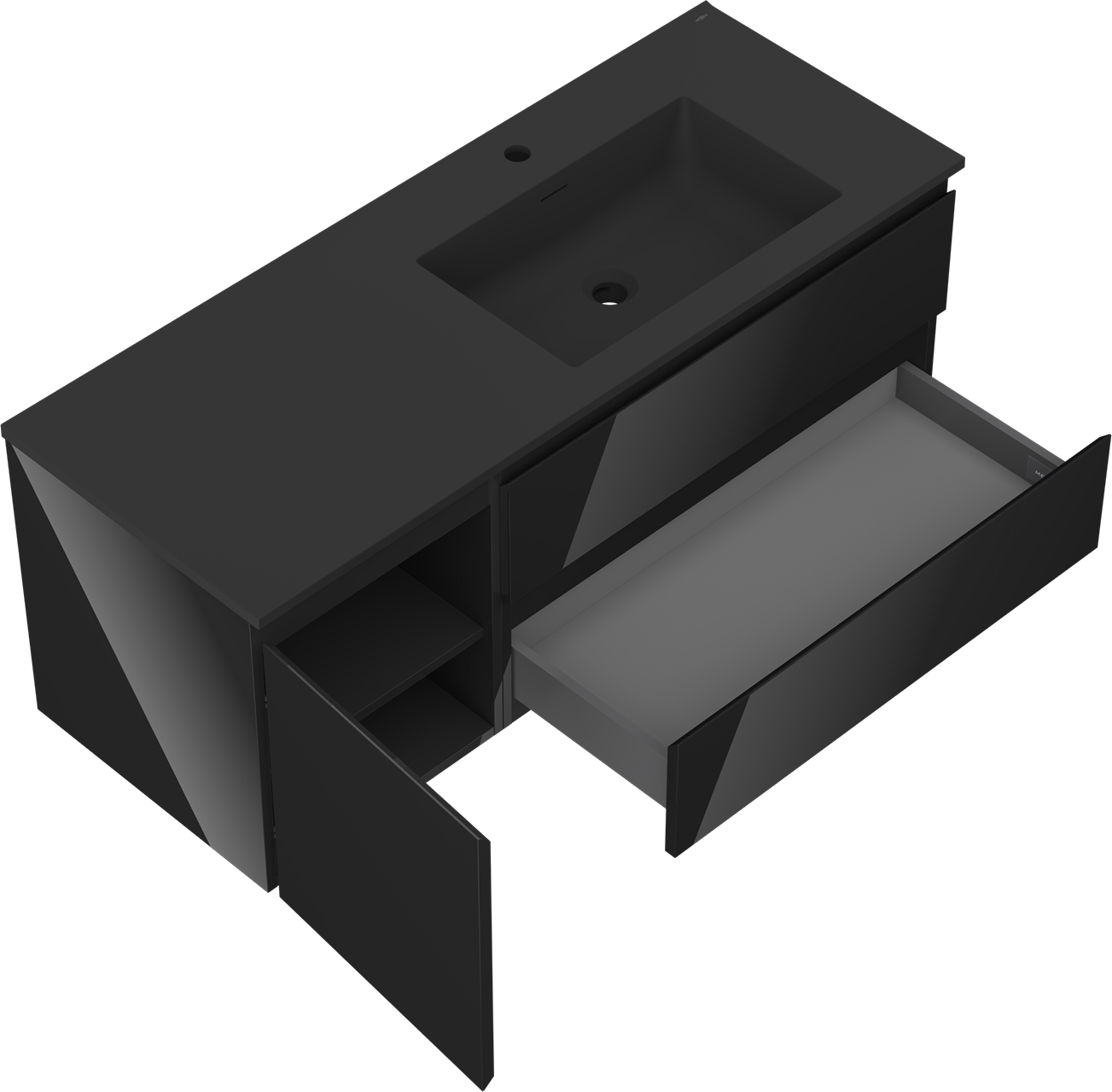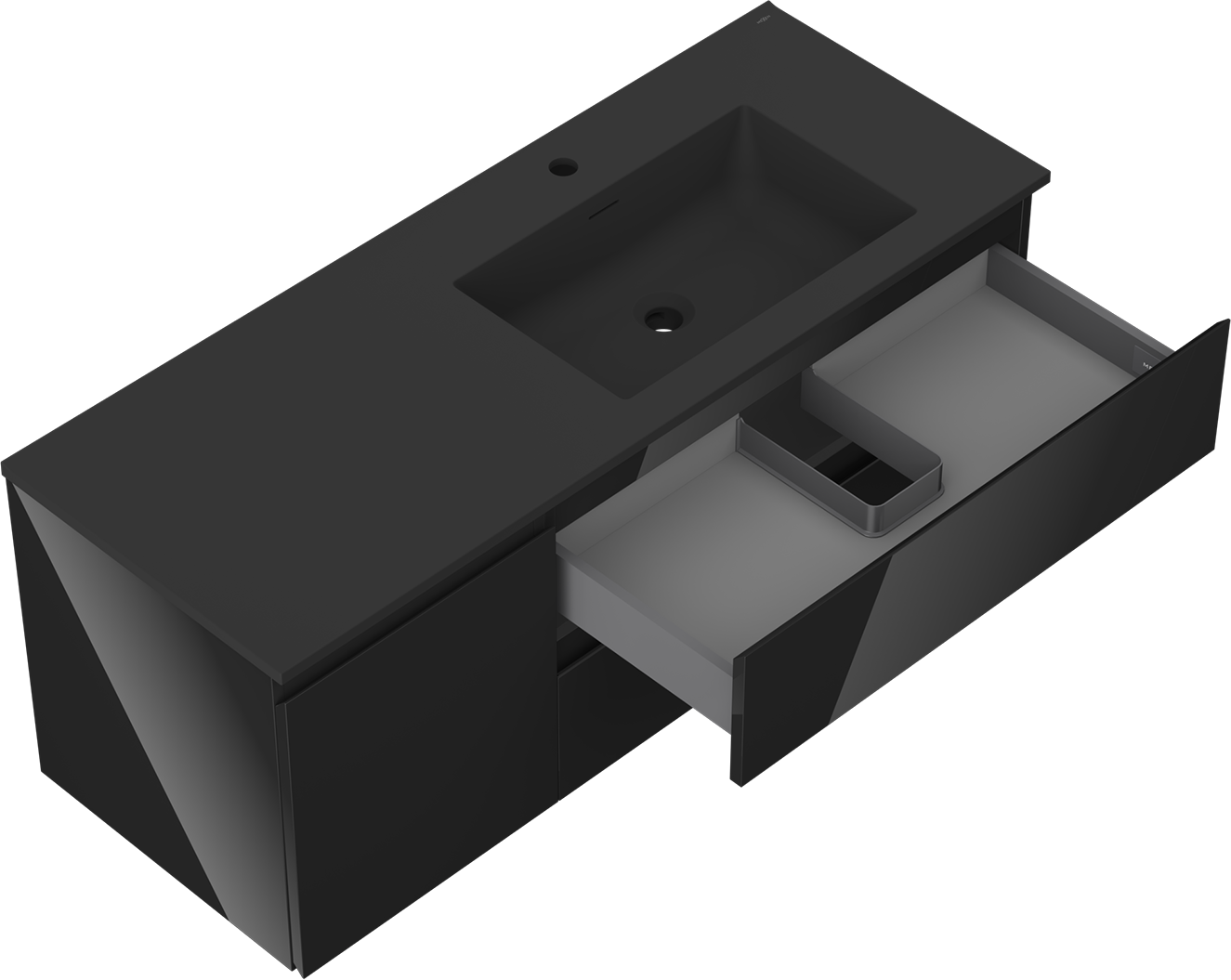 A fiókban lévő kivágás úgy van kialakítva, hogy befogadja a mosdó telepítéseknél szükséges szifont. Ennek köszönhetően a bútor teljesen funkcionálisan felszerelhető anélkül, hogy a fiók terének egy részét fel kellene áldozni a telepítés miatt.