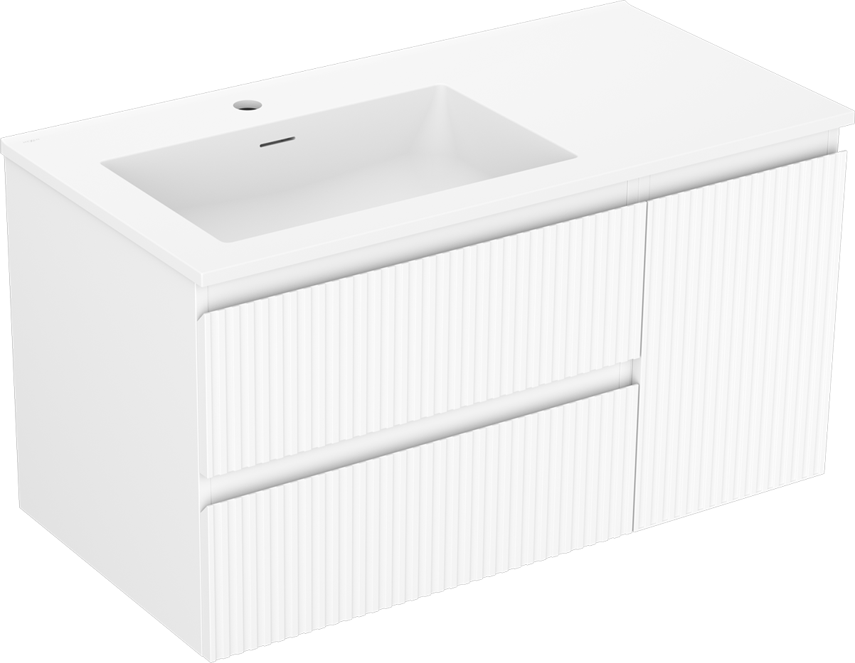 Mexen Rivel Otis bal oldali, 2S, 1A, bordázott, fehér matt 90 cm-es fürdőszobai szekrény mosdóval - 91A23-09047-3-BBFFF01-W18L01