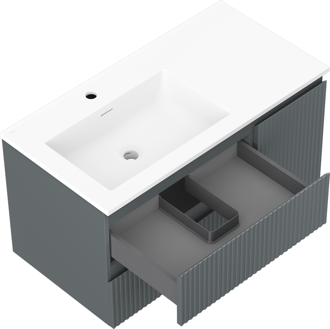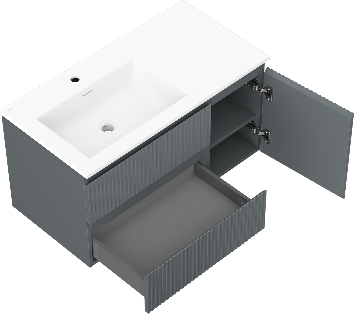 A fiókban lévő kivágás úgy van kialakítva, hogy befogadja a mosdó telepítéseknél szükséges szifont. Ennek köszönhetően a bútor teljesen funkcionálisan felszerelhető anélkül, hogy a fiók terének egy részét fel kellene áldozni a telepítés miatt.