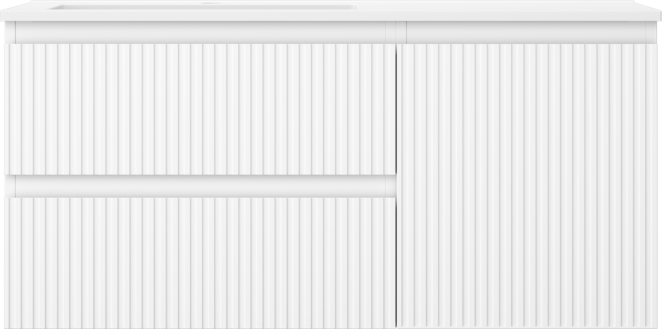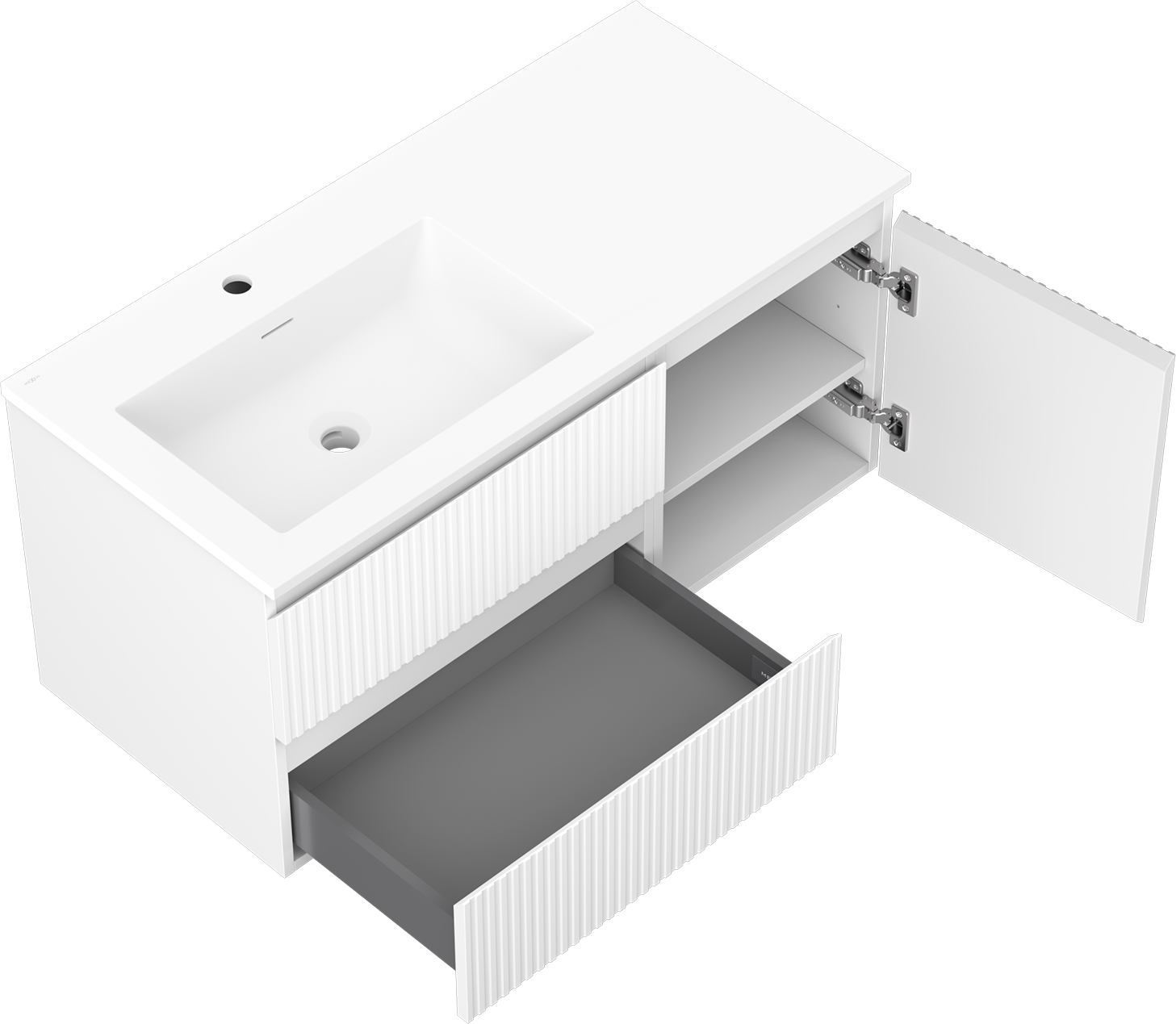 A fiókban lévő kivágás úgy van kialakítva, hogy befogadja a mosdó telepítéseknél szükséges szifont. Ennek köszönhetően a bútor teljesen funkcionálisan felszerelhető anélkül, hogy a fiók terének egy részét fel kellene áldozni a telepítés miatt.