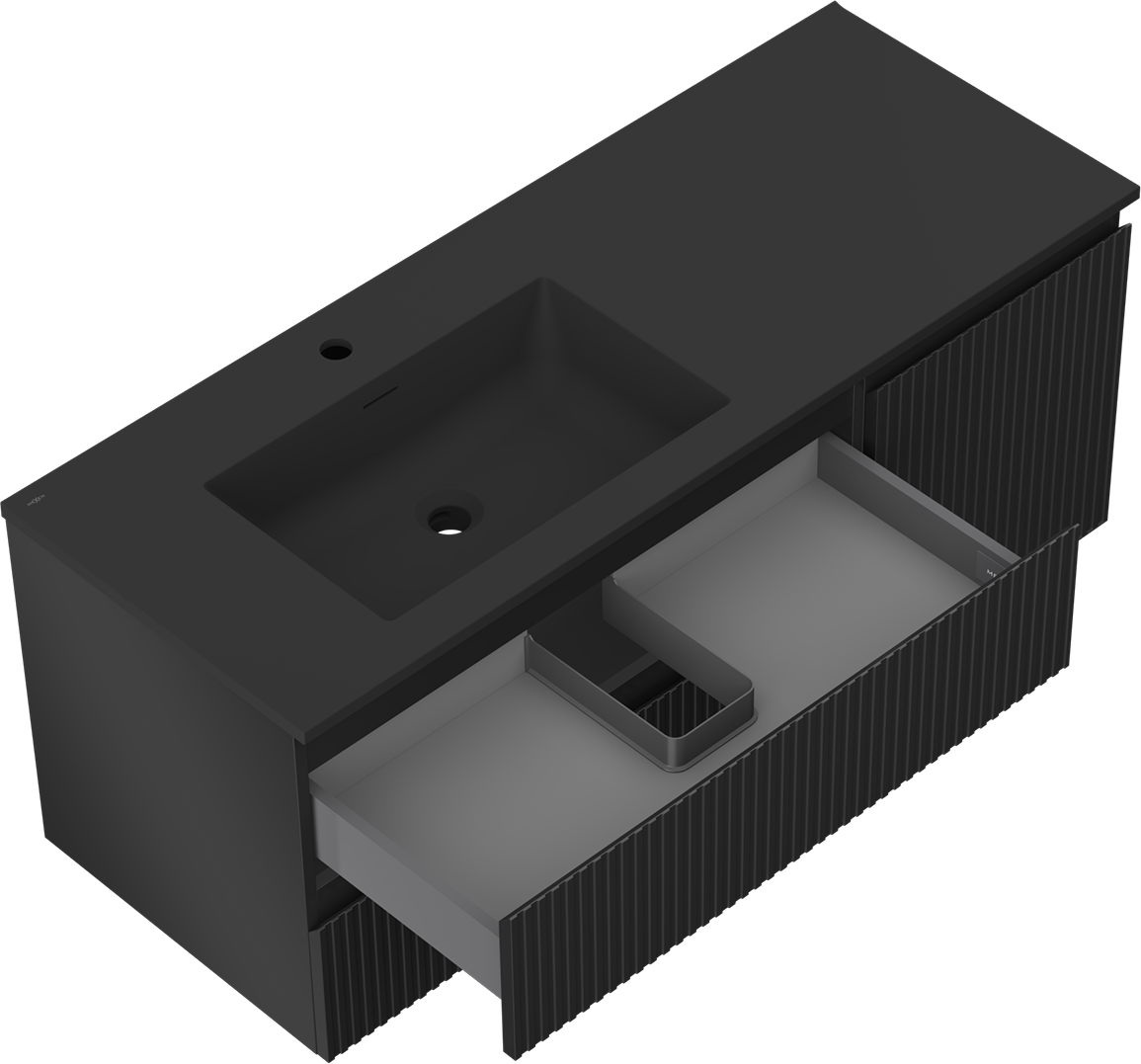 A fiókban lévő kivágás úgy van kialakítva, hogy befogadja a mosdó telepítéseknél szükséges szifont. Ennek köszönhetően a bútor teljesen funkcionálisan felszerelhető anélkül, hogy a fiók terének egy részét fel kellene áldozni a telepítés miatt.