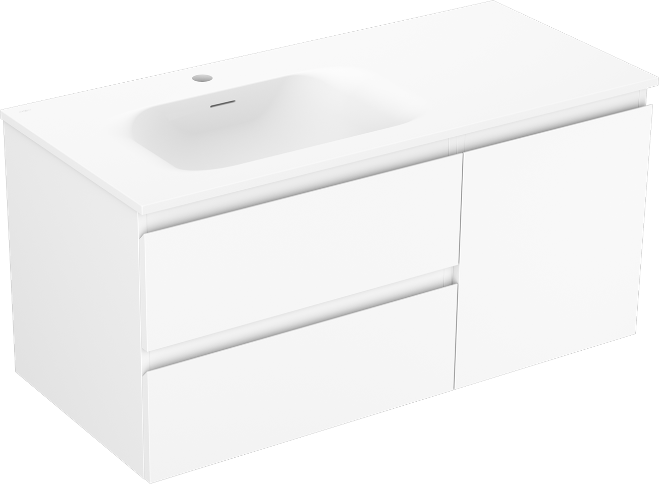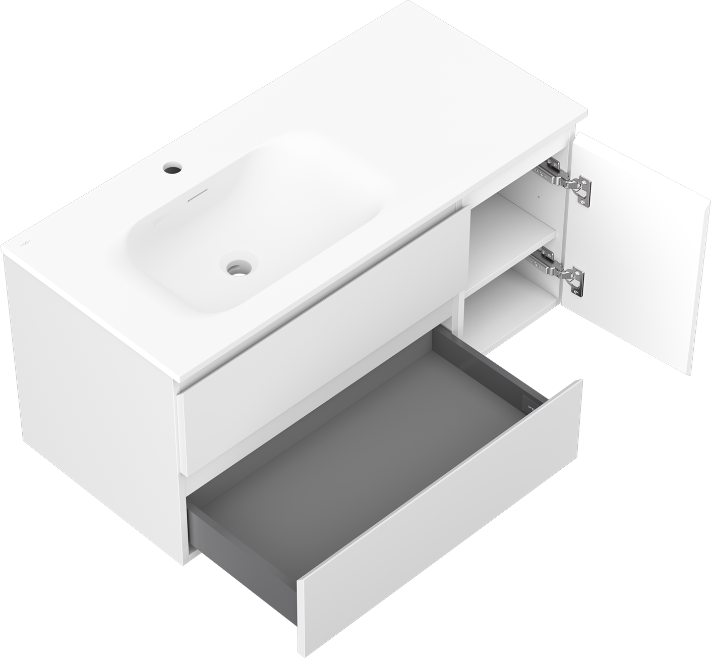 Mexen Orio 100 cm-es fürdőszobai szekrény balos Vela mosdóval, 2S, 1D, fehér matt - 91A13-10047-3-BBFFFF01-W23L01