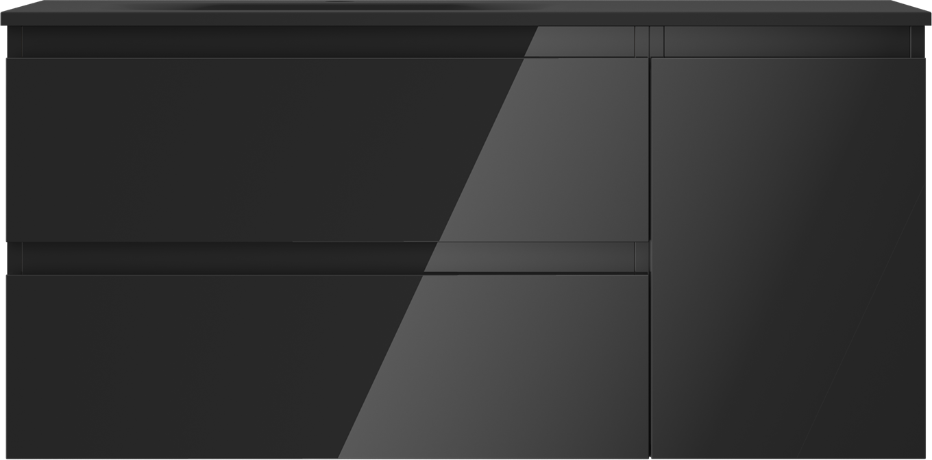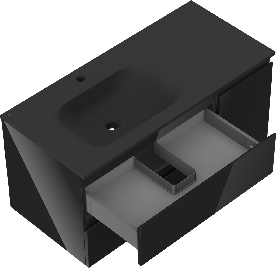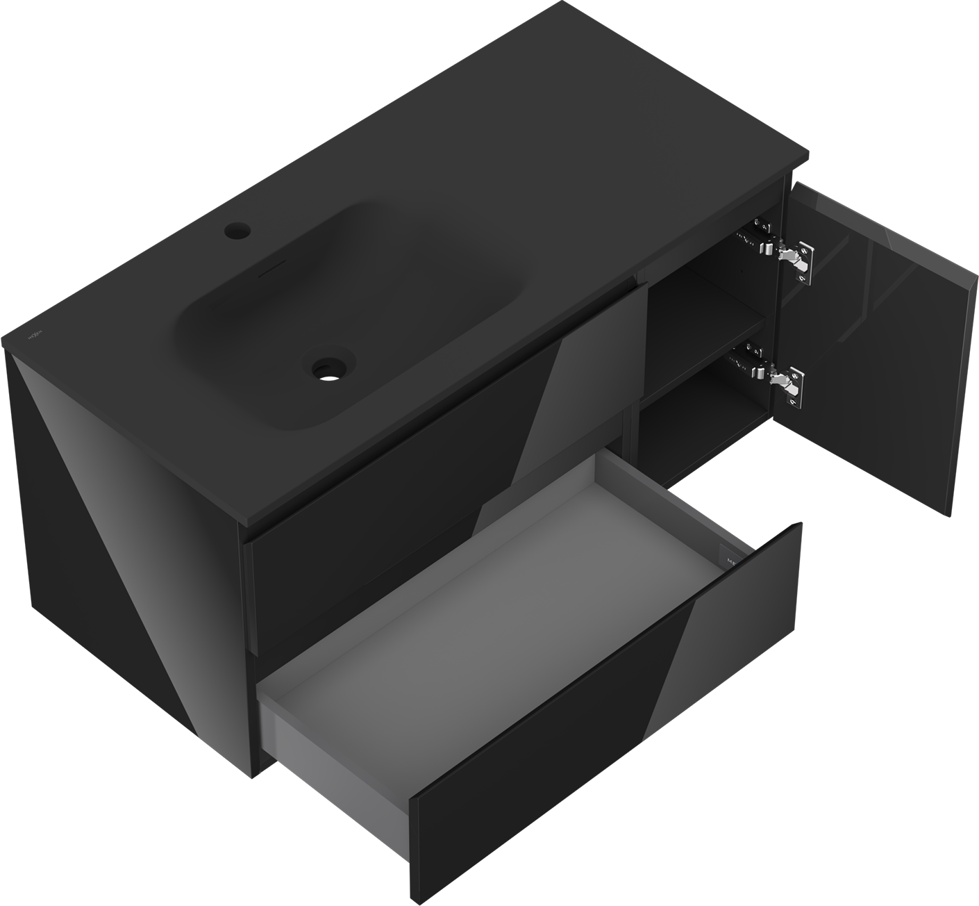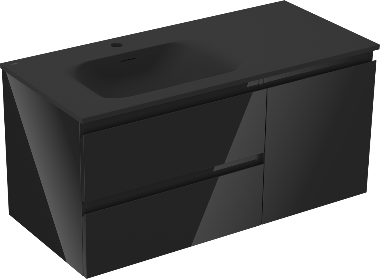 Mexen Orio 100 cm-es fürdőszobai szekrény bal oldali Vela mosdókagylóval, 2 fiók, 1 ajtó, fekete fényes/matt fekete