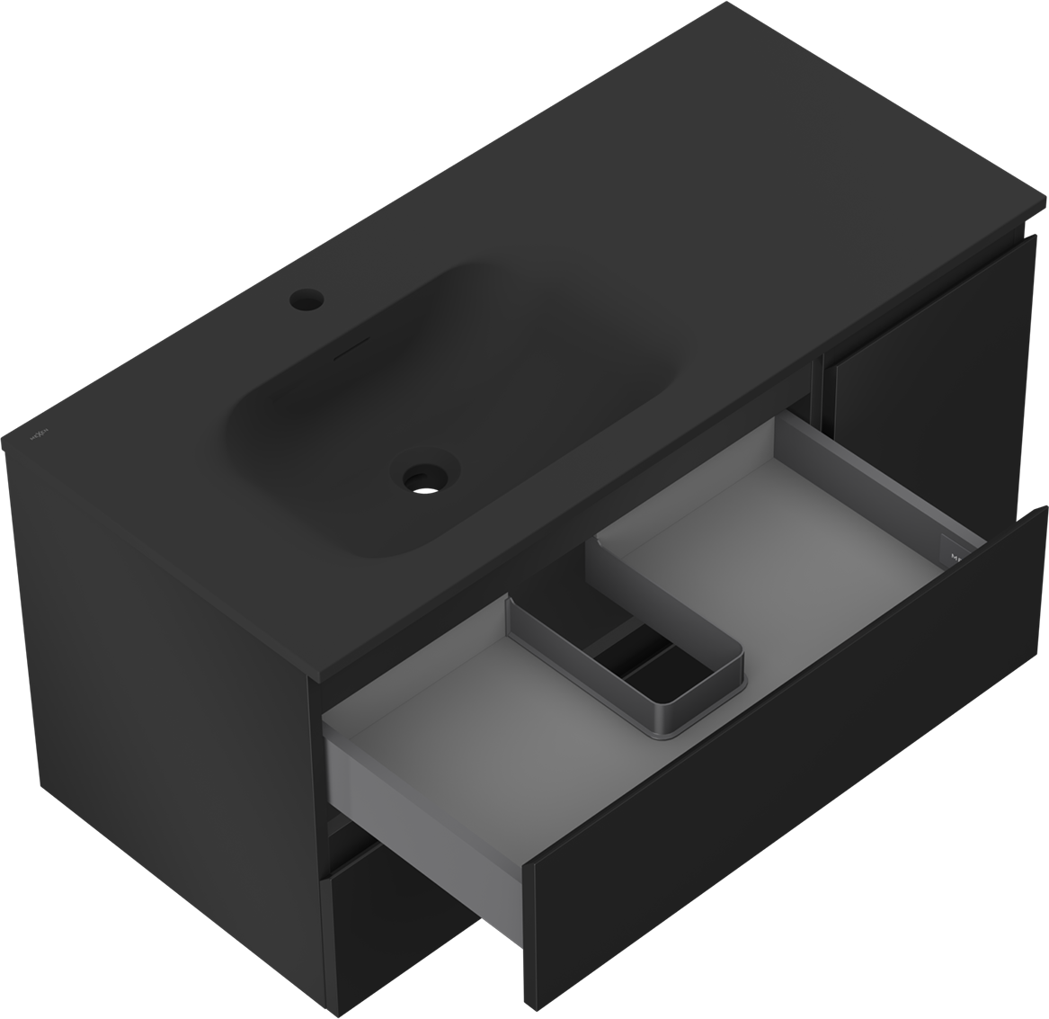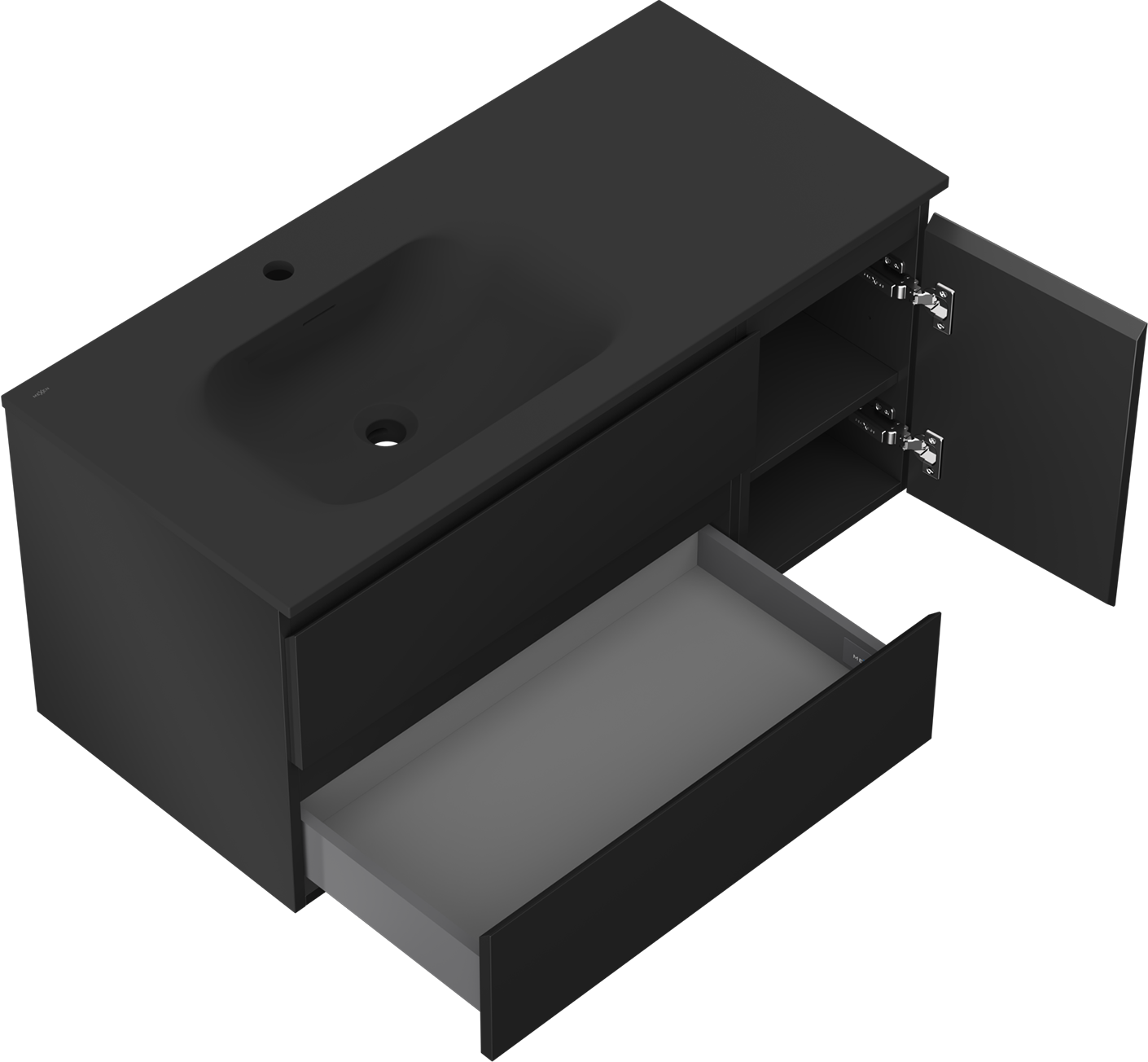Mexen Orio 100 cm-es fürdőszobai szekrény balos Vela mosdóval, 2S, 1D, fekete matt - 91A13-10047-3-BBFFF71-W23L71