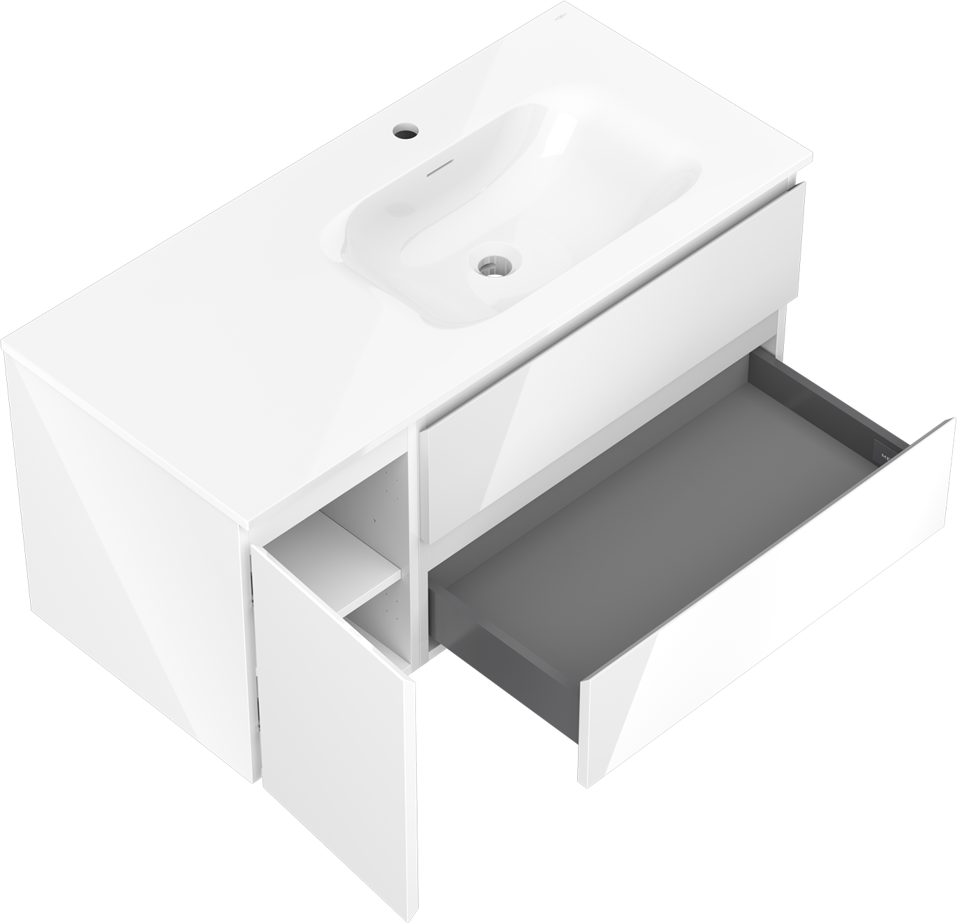 Mexen Orio fürdőszobai szekrény 100 cm mosdóval Vela jobb, 2F, 1A, fényes fehér - 91A13-10047-3-BBFFF00-W23P00