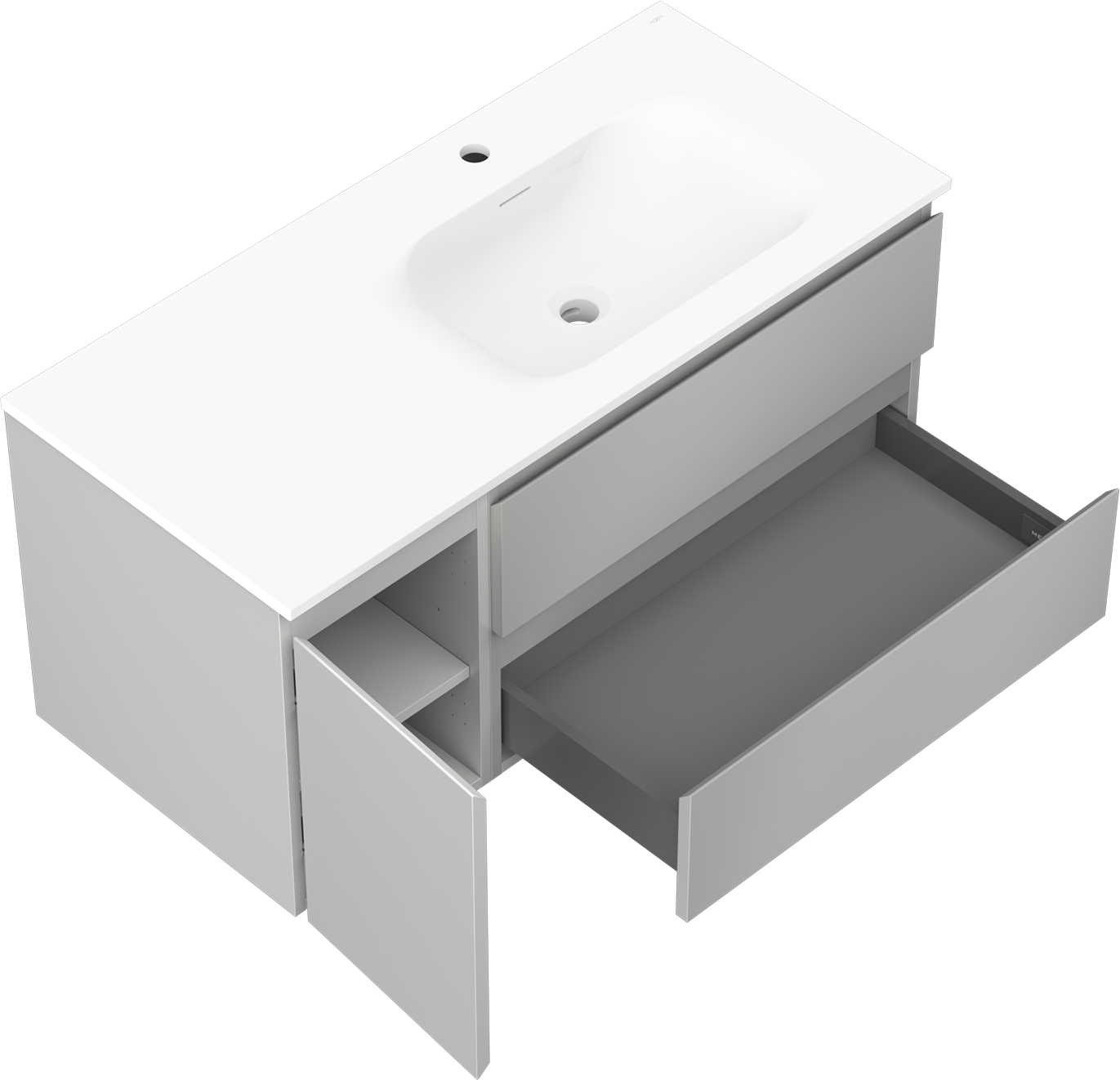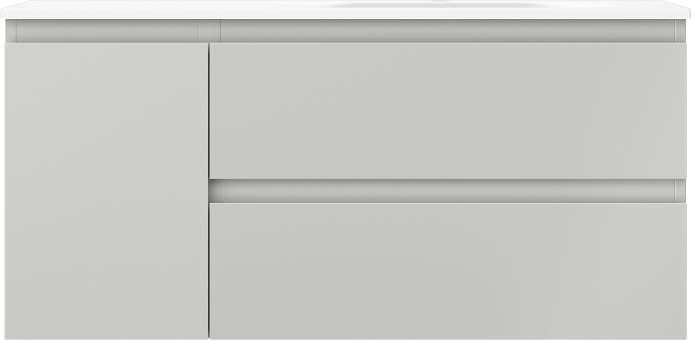 Mexen Orio 100 cm-es fürdőszobai szekrény Vela mosdóval jobbra, 2 fiókos, 1 ajtós, szürke matt/fehér matt