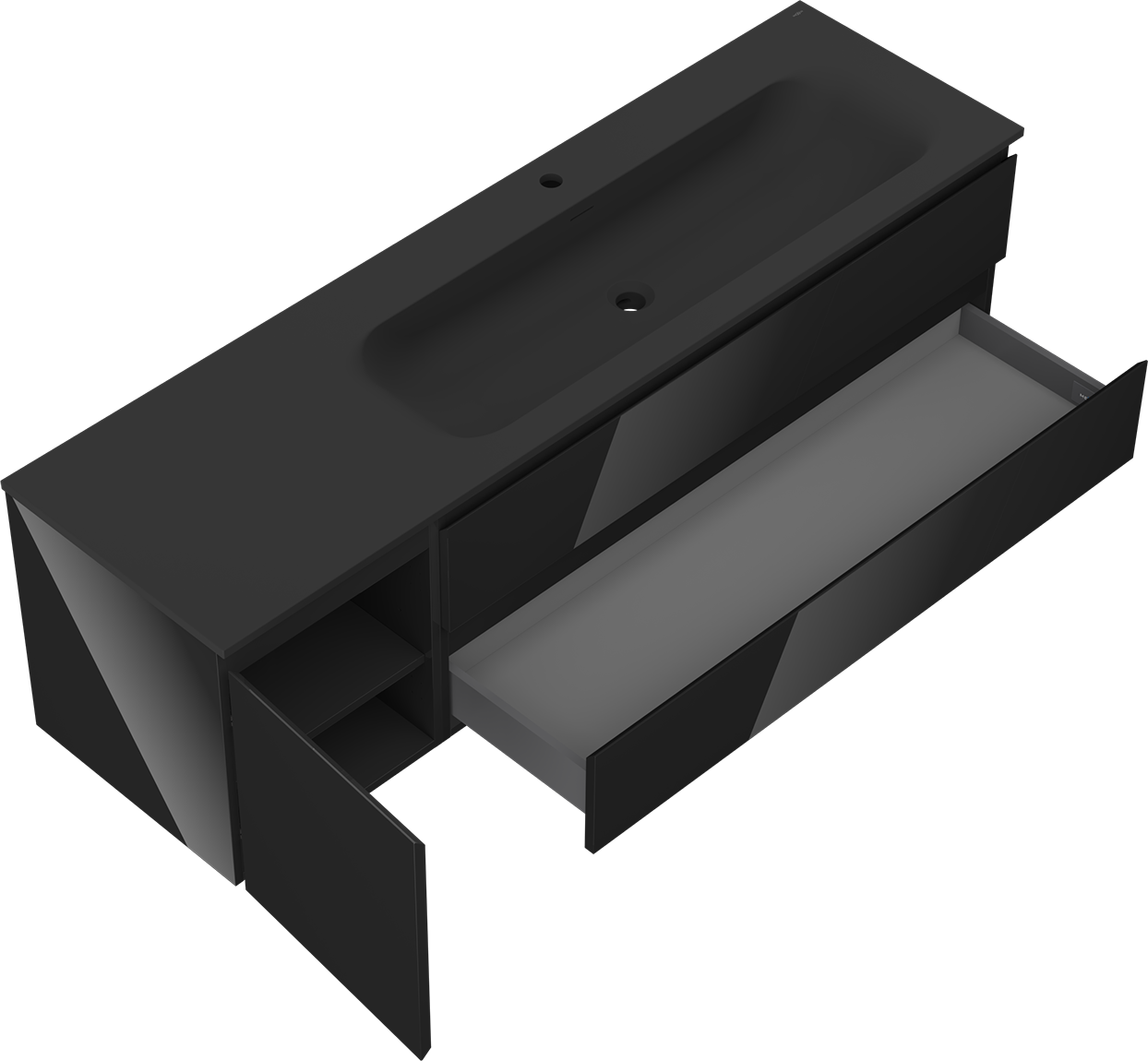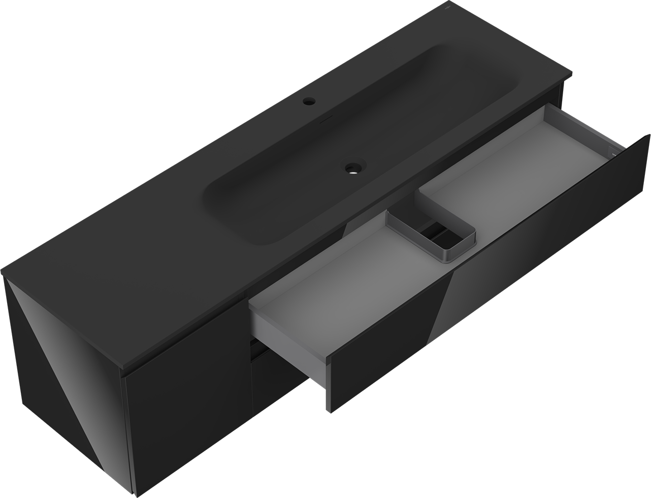 A fiókban lévő kivágás úgy van kialakítva, hogy befogadja a mosdó telepítéseknél szükséges szifont. Ennek köszönhetően a bútor teljesen funkcionálisan felszerelhető anélkül, hogy a fiók terének egy részét fel kellene áldozni a telepítés miatt.
