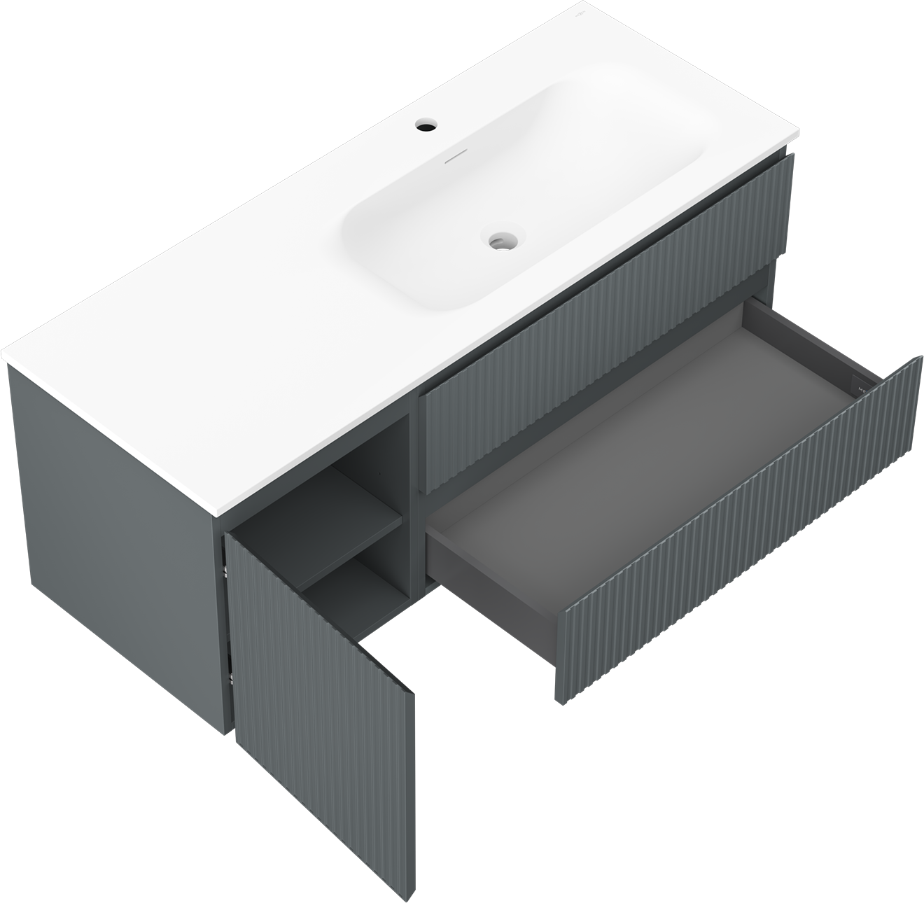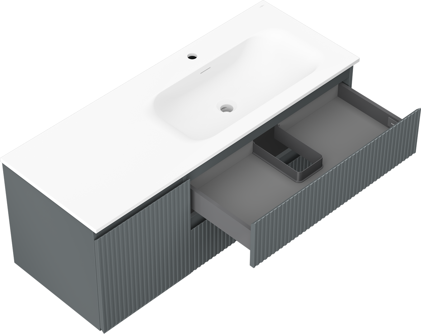 A fiókban lévő kivágás úgy van kialakítva, hogy befogadja a mosdó telepítéseknél szükséges szifont. Ennek köszönhetően a bútor teljesen funkcionálisan felszerelhető anélkül, hogy a fiók terének egy részét fel kellene áldozni a telepítés miatt.