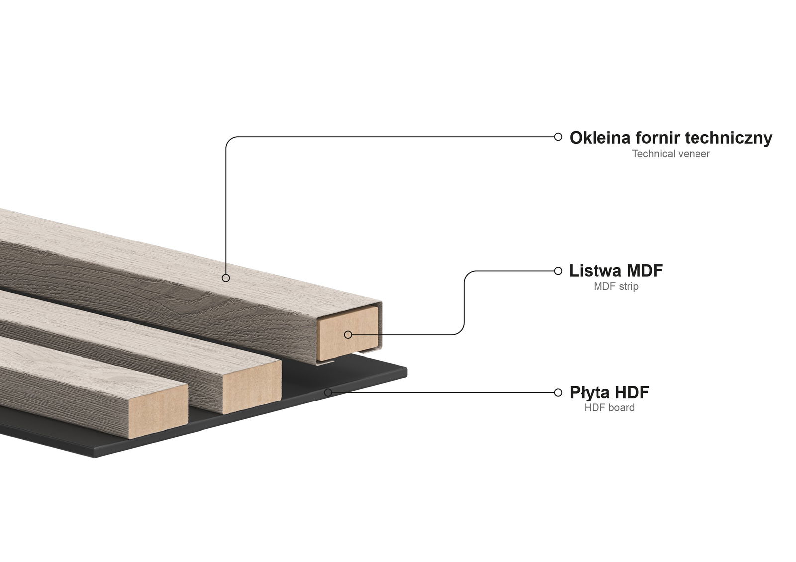 Lamelák anyaga: MDF lista + technikai furnér