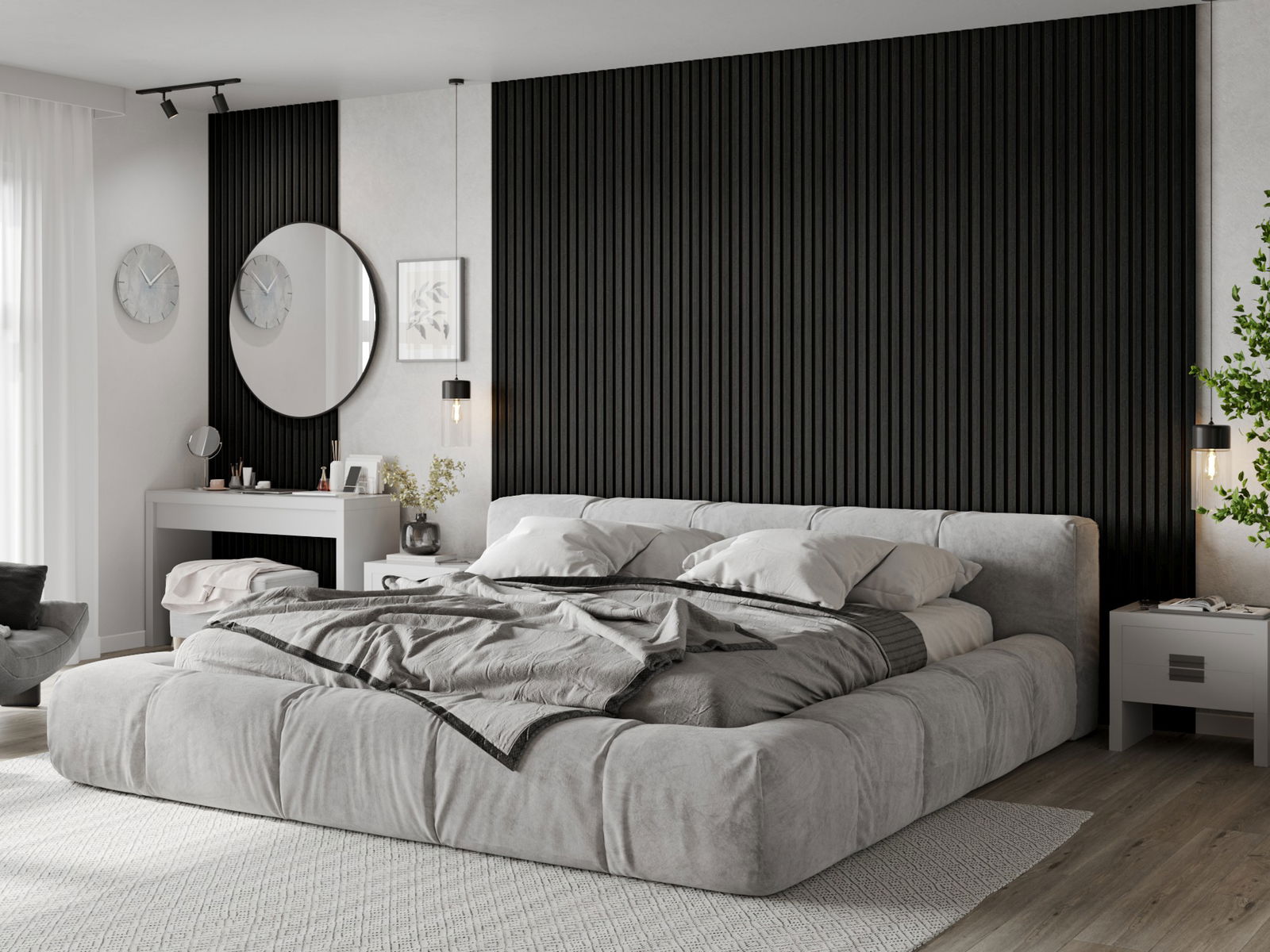 Mexen Lam-B fali panelek 275 x 30 cm, 4 mm HDF lemez, technikai furnér, Fekete Ezüst Tölgy - S100-275307-3015-025