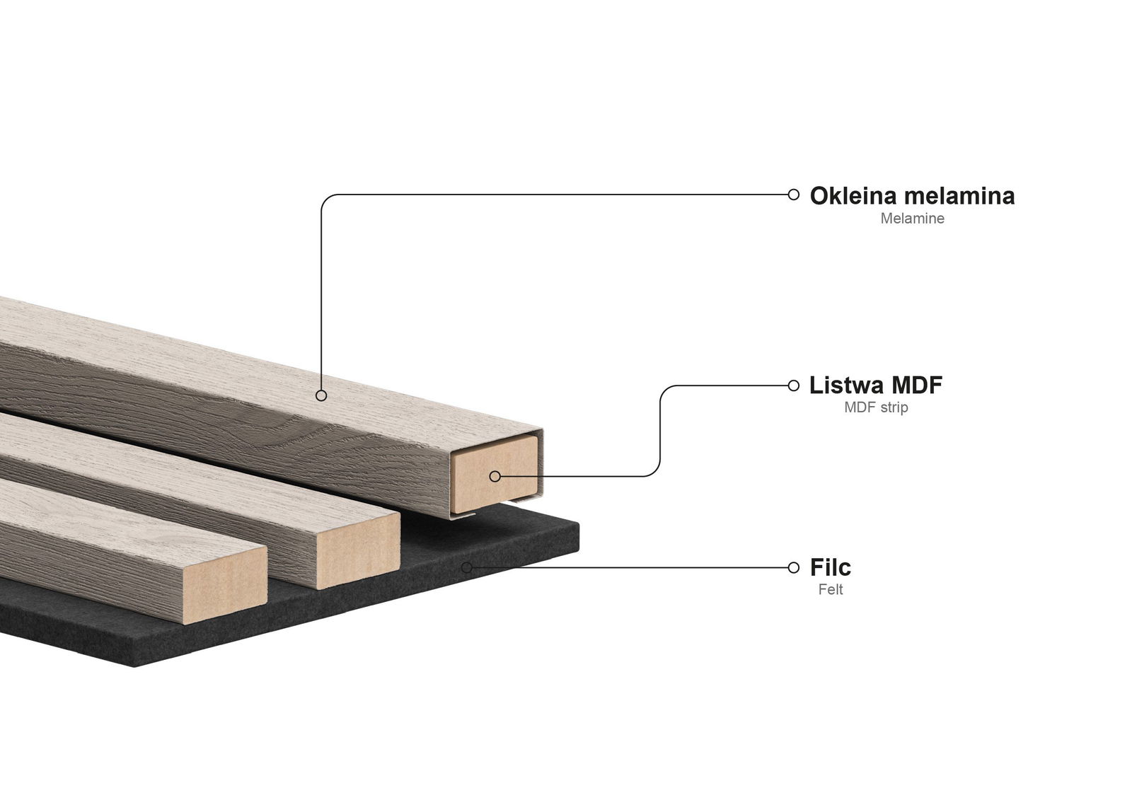 Mexen Lam-F akusztikus fali lamellák 275 x 31,5 cm, 6 mm filc, Mokkapácolt Tölgy - S105-275317-2812-074