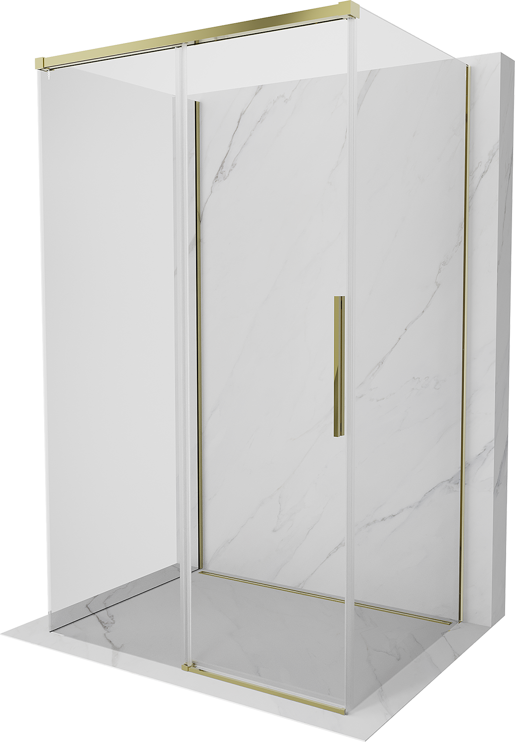 Mexen Rox-3S 3-falú zuhanykabin tolóajtóval, 95 x 75 cm, áttetsző, arany - 8C2-095-075-50-00-3S