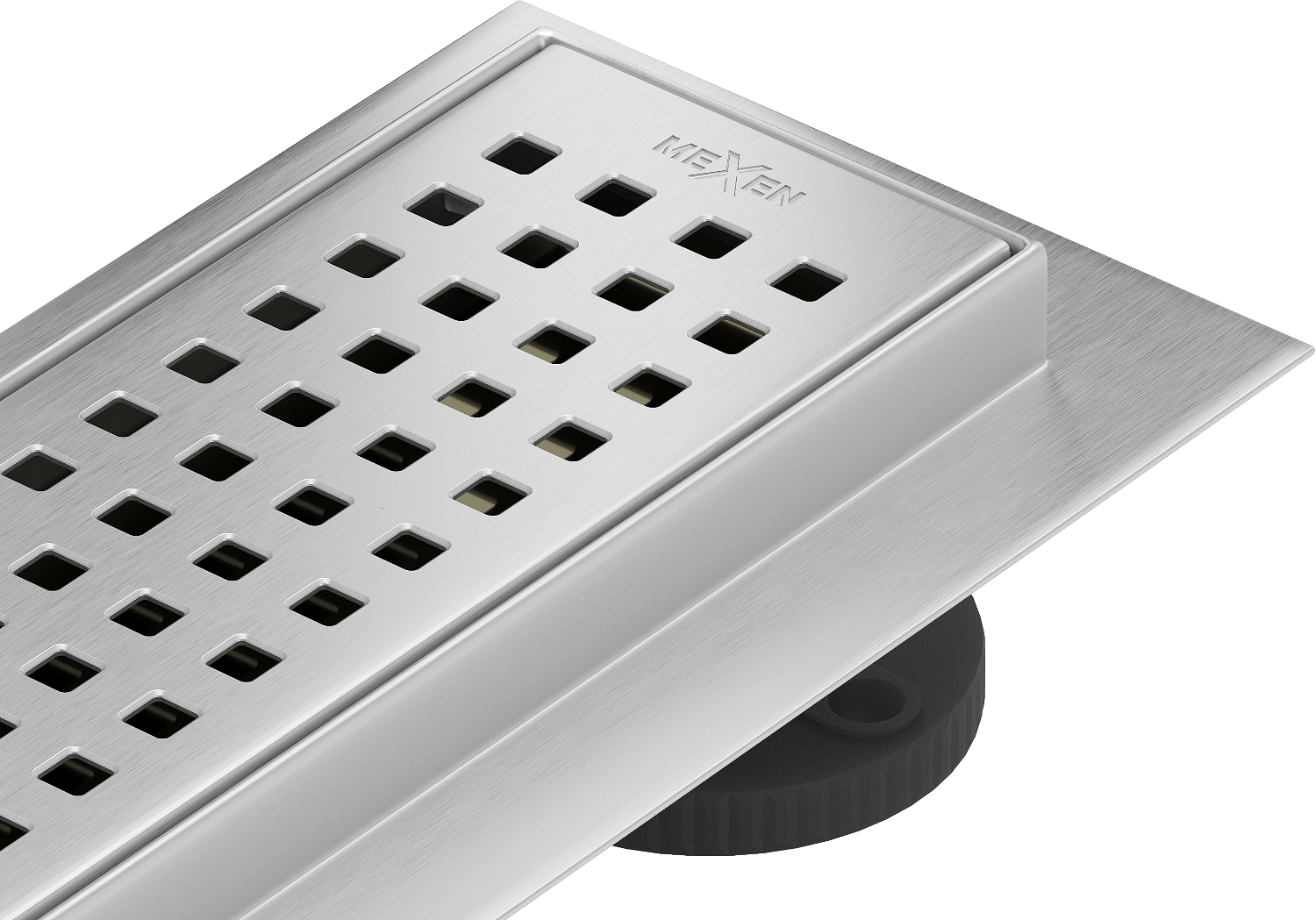 A lefolyó állítható lábakkal van felszerelve, amelyek lehetővé teszik a megfelelő lefolyó magasság és a szint egyenetlen felületén történő beállítását. Ilyen módon a csatorna még jobban megfelel egy adott fürdőszoba körülményeinek.