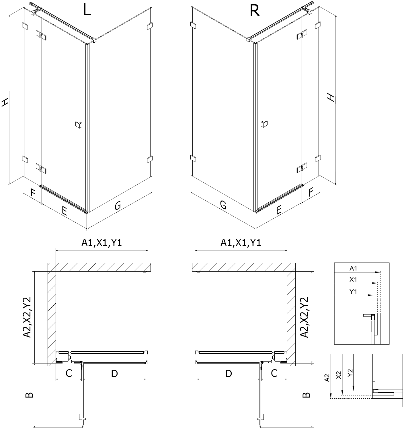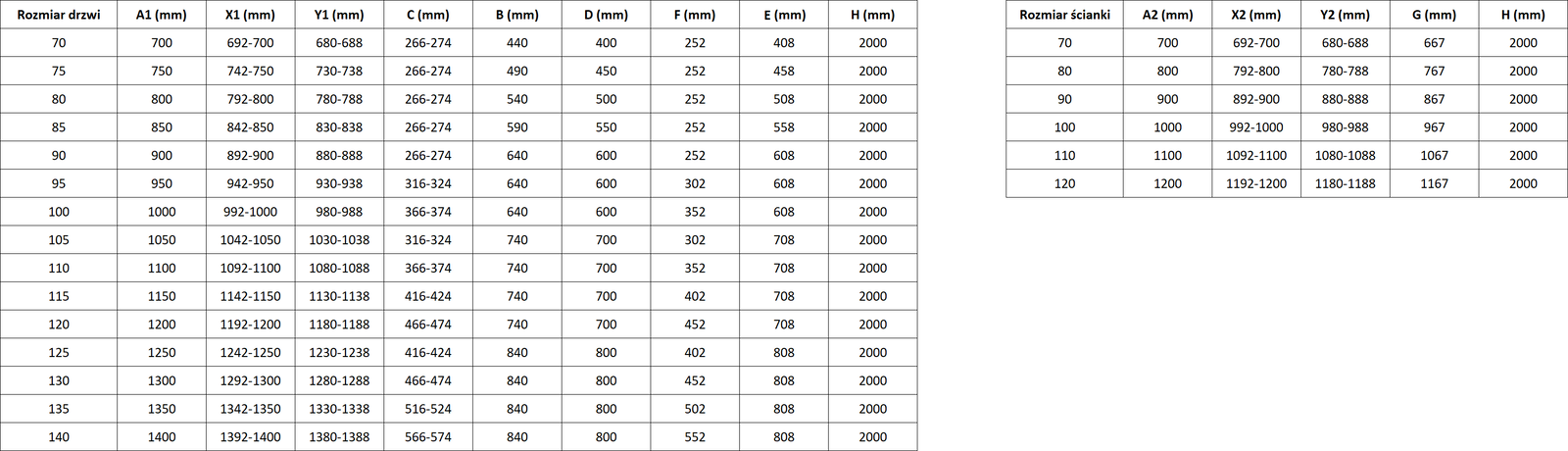 A zuhanykabinok, ajtók és válaszfalak alapesetben meghatározott méretű zuhanytálcákra történő szerelésre alkalmasak. Ezek a méretek szerepelnek a termék nevében vagy leírásában. Fontos azonban tudni, hogy az elemek tényleges méretei kismértékben eltérhetnek a névleges értékektől. Közvetlenül a padlóra történő szerelés esetén javasoljuk a külső méretek és az elemek elrendezésének pontos ellenőrzését a műszaki rajz alapján.