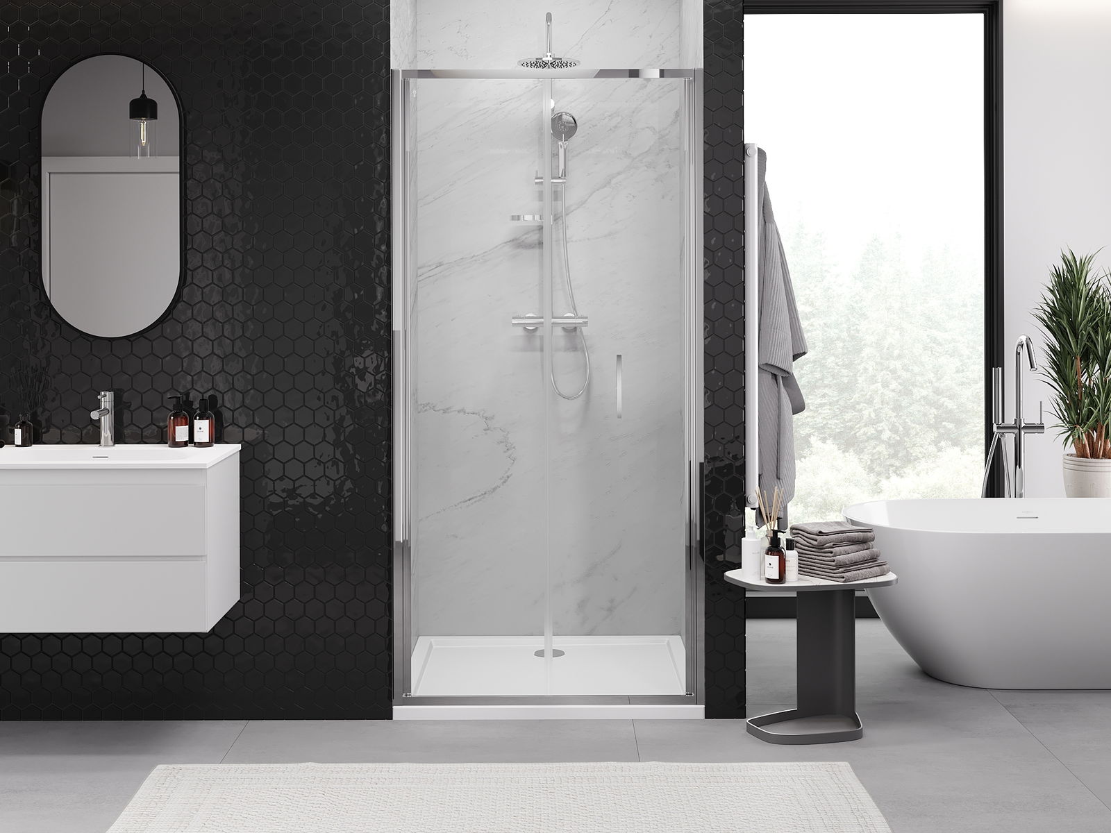 Lehetőség az ajtók belső összehajtására, ez a funkció több teret biztosít zuhanyzás nélkül. Ideális megoldás kisebb fürdőszobákhoz, amelyek maximálisan kihasználják a rendelkezésre álló területet.