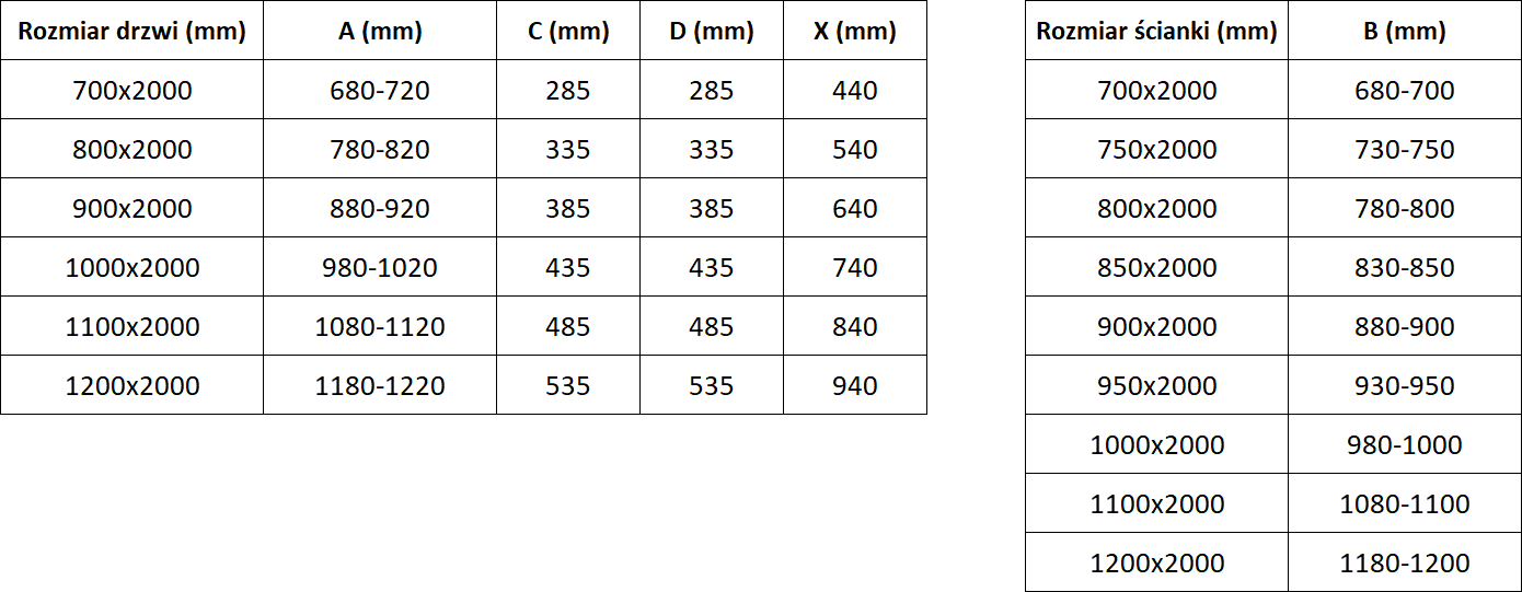 A zuhanykabinok, ajtók és válaszfalak alapesetben meghatározott méretű zuhanytálcákra történő szerelésre alkalmasak. Ezek a méretek szerepelnek a termék nevében vagy leírásában. Fontos azonban tudni, hogy az elemek tényleges méretei kismértékben eltérhetnek a névleges értékektől. Közvetlenül a padlóra történő szerelés esetén javasoljuk a külső méretek és az elemek elrendezésének pontos ellenőrzését a műszaki rajz alapján.