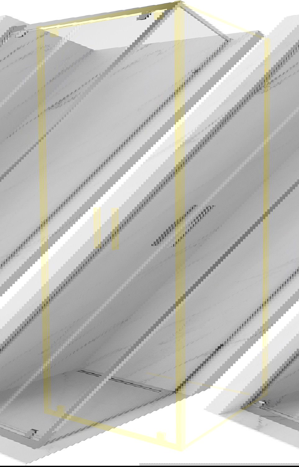 Mexen Exo 110 x 110 cm-es nyitható zuhanykabin, átlátszó, arany - 8182-110-110-50-00