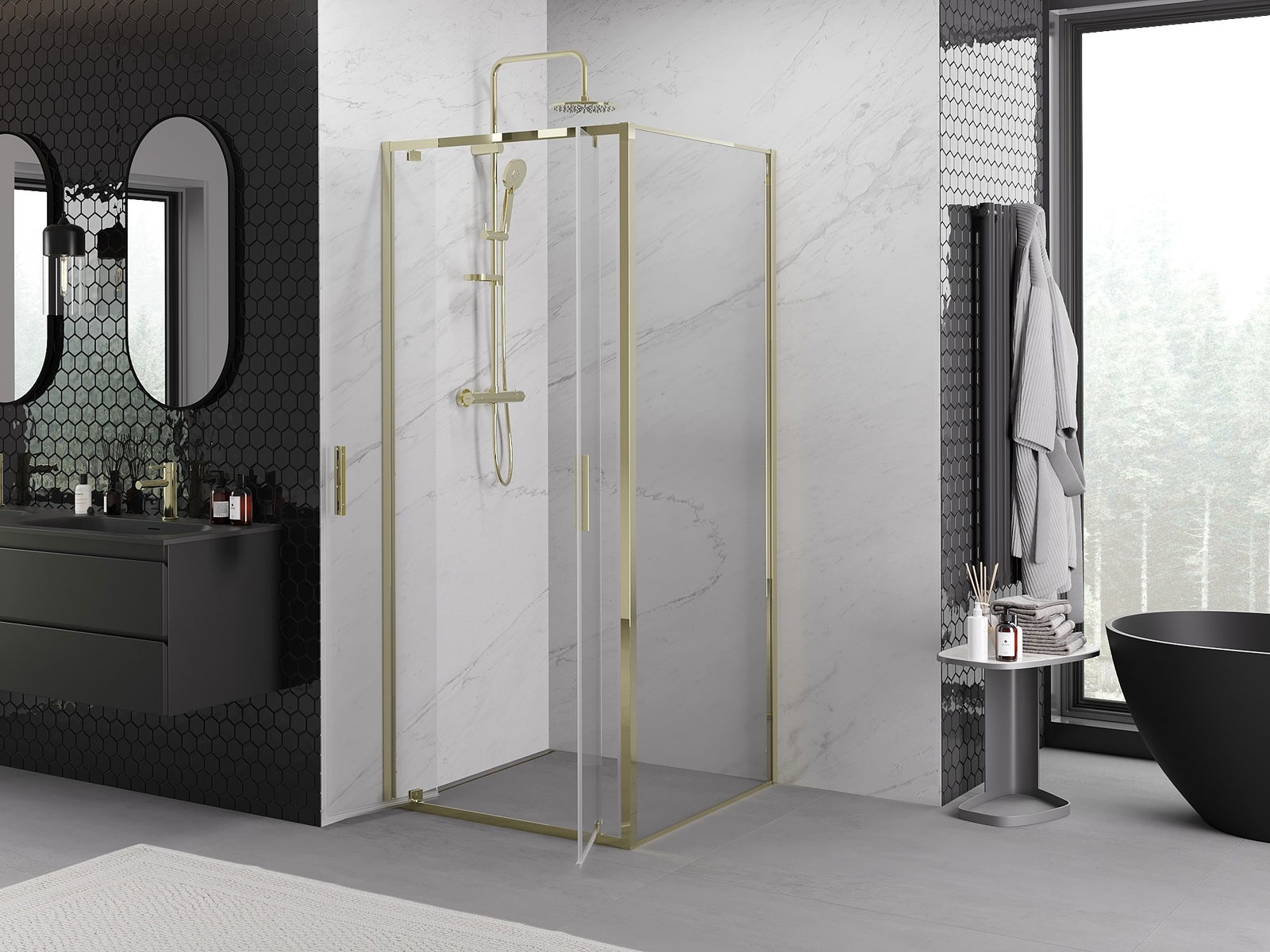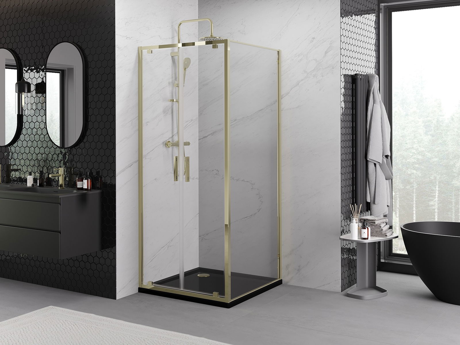 A terméket igény szerint felszerelheti akár a zuhanytálcára, akár közvetlenül a padlóra. Az univerzális szerelési mód lehetővé teszi a termék alkalmazkodását különböző típusú fürdőszobákhoz és térbeli konfigurációkhoz.