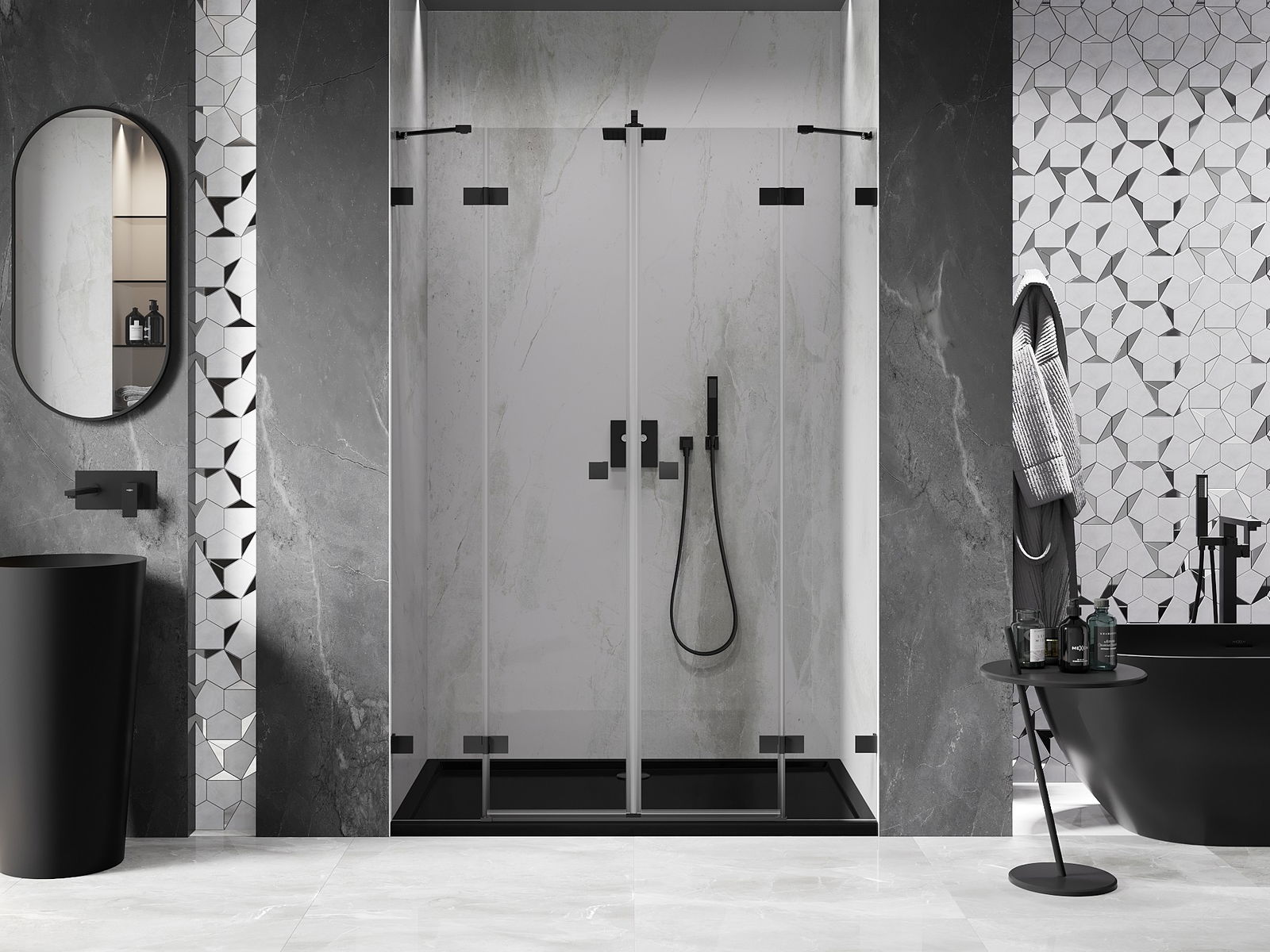 Mexen Lunar Dupla nyíló zuhanyajtó 140 cm, átlátszó, fekete - 834D-140-000-70-00
