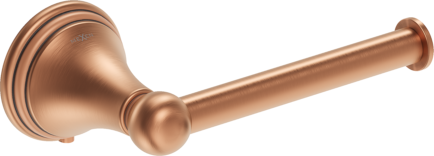 A Mexen Lusso WC-papírtartó elegáns és tartós megoldás a fürdőszobájához. Fém kivitelének köszönhetően tartósságot és szilárdságot garantál. Az antik réz kivitel klasszikus bájt kölcsönöz és remekül illeszkedik a különféle belső terek kialakításához. 16 cm-es szélességével és 5,9 cm-es magasságával ideálisan illeszkedik a standard papírtekercsekhez, a faltól való 8 cm-es távolsága pedig kényelmet biztosít a mindennapi használathoz.
