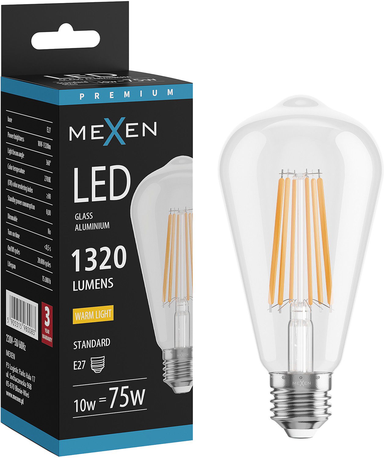 Mexen Vintis LED filament izzó E27, ST64, 10W, Meleg - 2700K, 1320 lm, átlátszó - L152-E27-1027-00