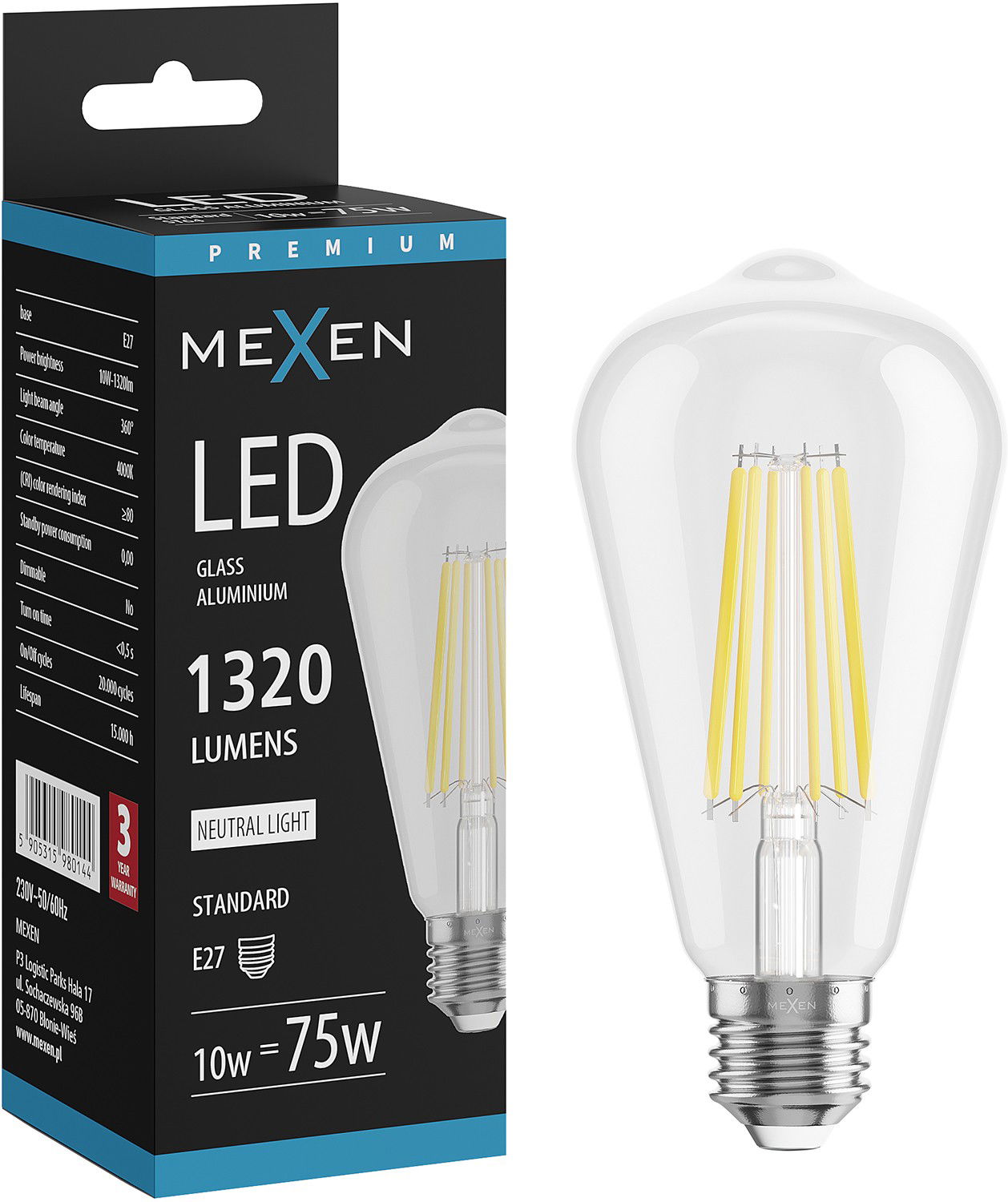 Mexen Vintis LED filament izzó E27, ST64, 10W, Semleges - 4000K, 1320 lm, átlátszó - L152-E27-1040-00