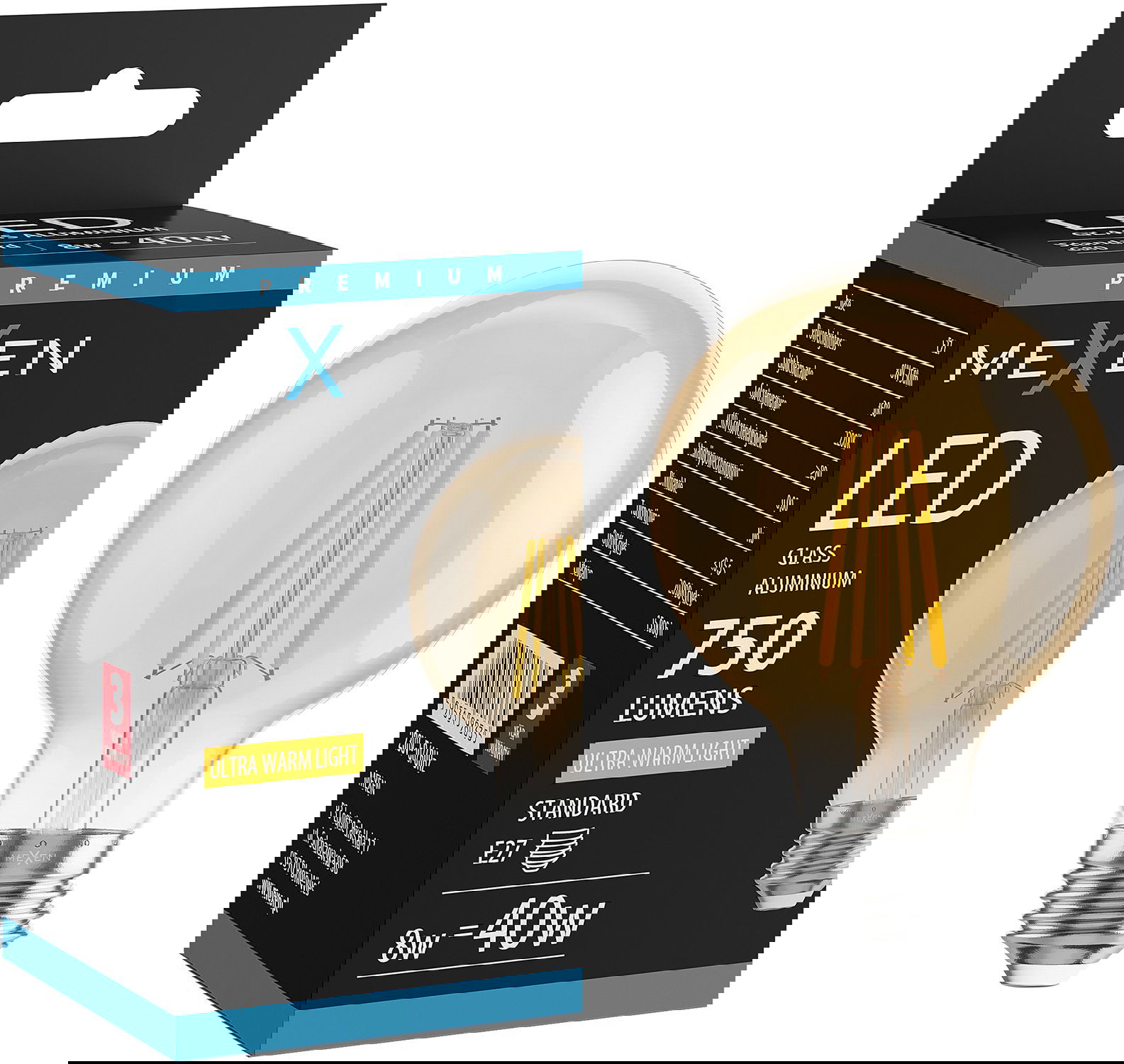 Mexen Vintis LED szál izzó E27, G80, 8W, Meleg - 2200K, 750 lm, borostyán - L155-E27-0822-50